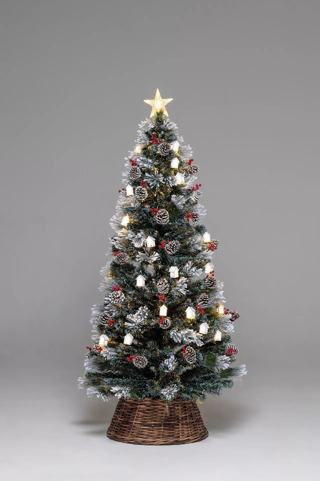 Светодиодная елка Сказочная 180 см. с натуральными шикарными шишками сияет всеми цветами радуги, создавая новогоднее настроение и тепло в вашем доме. А милый декор в виде уютных светящихся домиков и пронзительно-красных гроздьев рябины придаёт красавице особый шарм. Она просто создана для того, чтобы дарить праздник и вселять в сердца людей веру в прекрасное будущее. Мы готовы поспорить: если эту пушистую леди поместить в сугроб, никто даже не заподозрит, что она искусственная. Но к чему морозить Сказочную красотку в холодном зимнем лесу? В вашем доме она будет смотреться более гармонично. К тому же, такая елочка уже готова к применению и не требует украшений.