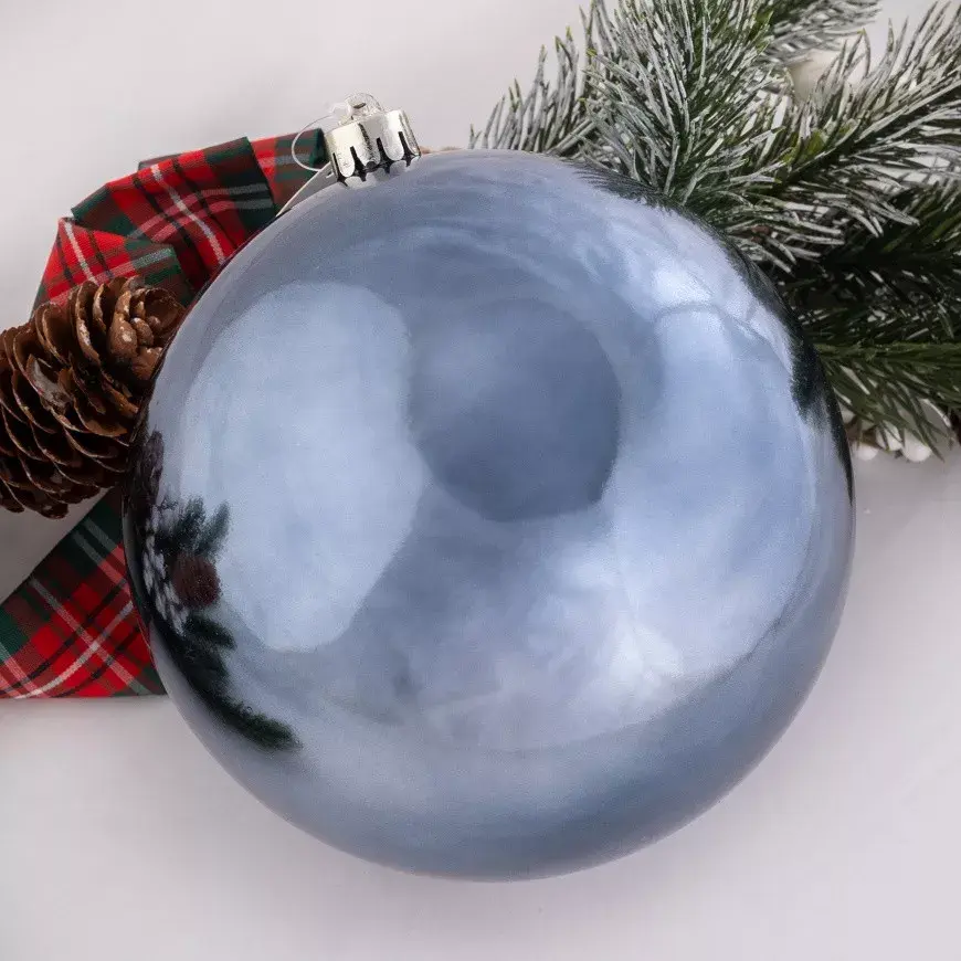 Пластиковый глянцевый шар 140 мм. классическиго синего цвета прекрасно подойдет для украшения высотных елей от 3 метров.