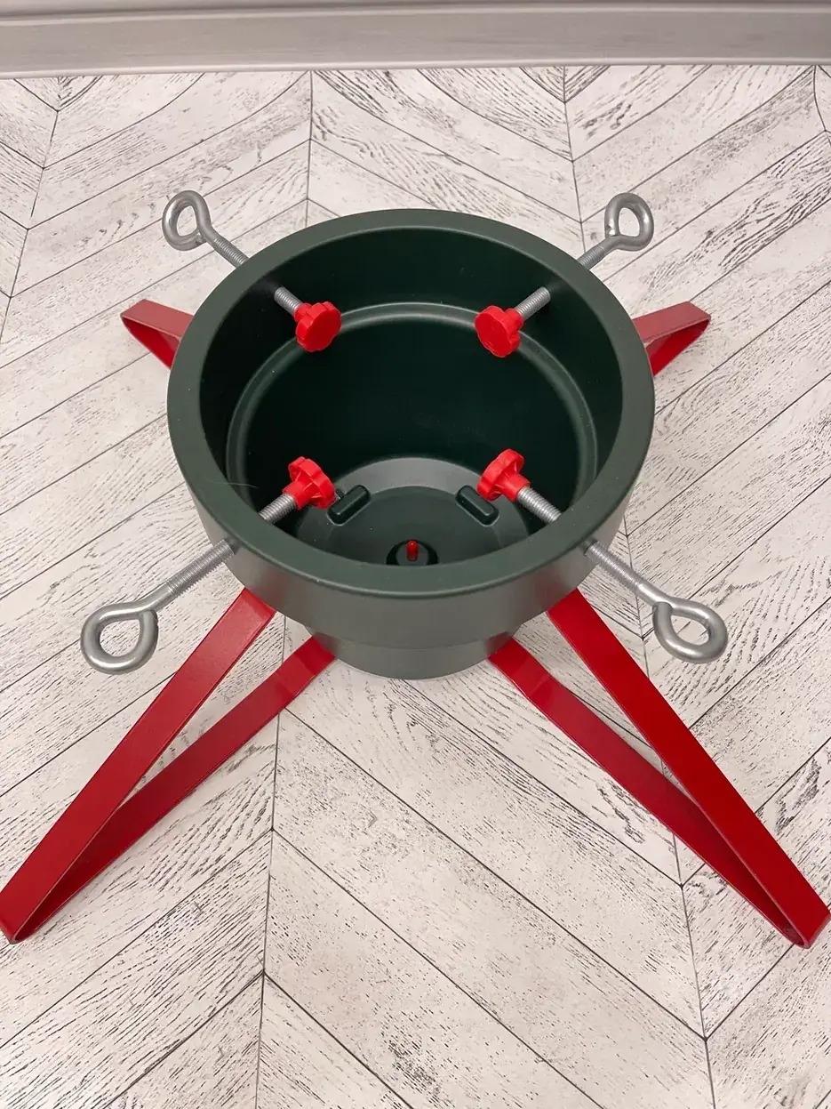 Кто сказал, что зеленый и красный не сочетаются? Мы готовы доказать вам обратное прямо сейчас! Абсолютный хит нынешнего сезона - подставка под новогоднюю елку, выполненная именно в этих двух цветах. Корпус подставки изготовлен из прочного пластика глубокого темно-зеленого оттенка, а ярко-красные ножки создают контраст и великолепно подчеркивают ее красоту.
