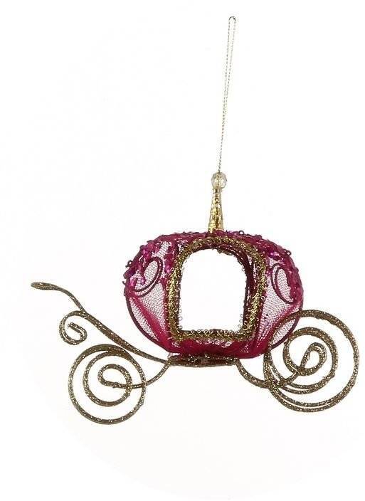 Новогодняя игрушка из сказок «Карета для Золушки» придаст наряду хвойной красавицы особую изюминку, создавая вокруг атмосферу зимней сказки и новогоднего волшебства. Колеса кареты сделаны из металлической проволоки и покрыты золотыми блестками, а сам каркас кареты обтянут прозрачной кружевной тканью и стразами. Такой игрушкой можно украсить как интерьер в спальне Вашей принцессы, так и новогоднюю елочку. А для удобного размещения предусмотрена петелька.