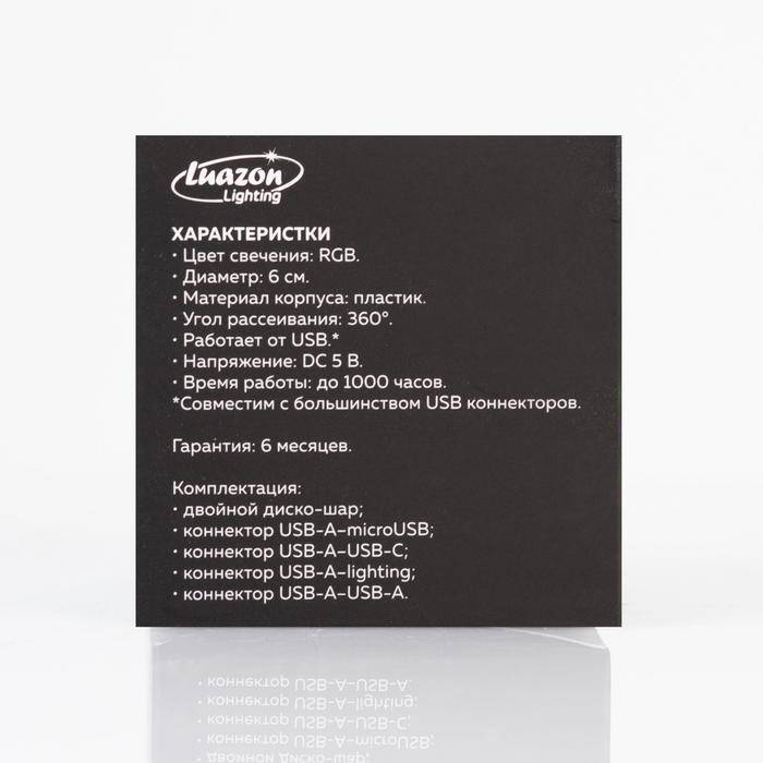 Кто бы мог подумать, что с помощью небольшого шарика диаметром всего 7 см можно создать яркую, шикарную иллюминацию?! Проектор «Двойной диско-шар» – поистине гениальное творение мастеров фирмы Luazon Lighting. Это изделие – настоящая находка не только для жилого помещения, но и для кафе или бара. Опции впечатляют – RGB, 4 коннектора для подключения.