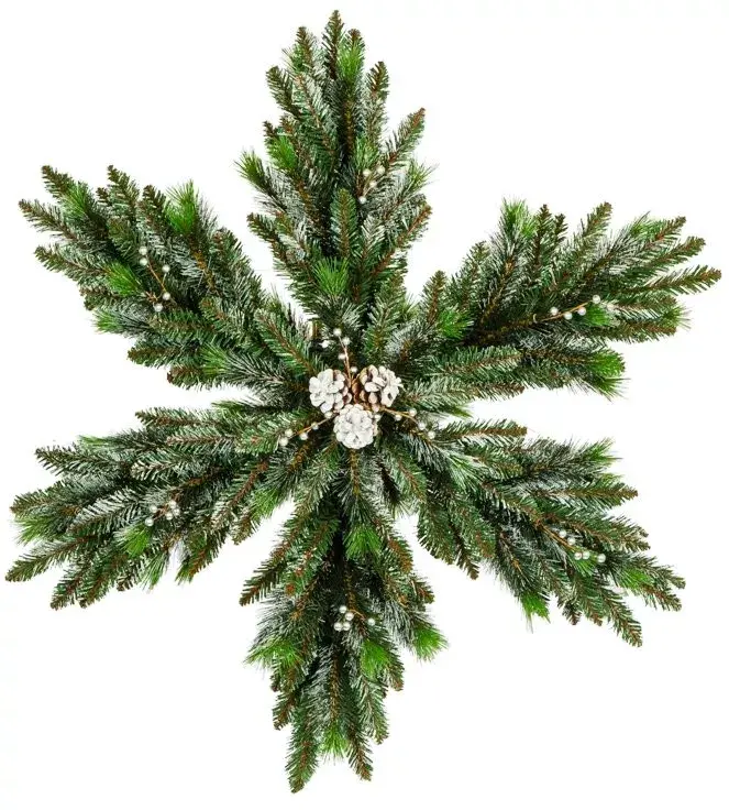 Приближается Новый год и Ваш дом должен быть красивым! Всем владельцам квартир, частных домов или дач, знакома трудность, связанная с декорированием. В помощь — мы предлагаем Рождественскую снежинку «Нежность» с шишкамии ягодами двухстороннюю от Российского производителя ЕлкиТорг. Снежинкой можно украсить любое пространство, она объёмная и найдет свое место как на стене, так и подвешенная под потолок. Снежинка выполнена из первосортного ПВХ, Лески, очень красиво задекорирована натуральными шишками и искусственными ягодами. Изделие будет радовать Вас не один год, не теряя своей актуальности!