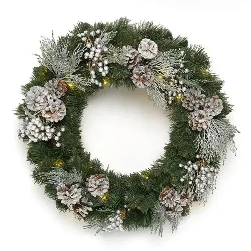 Настоящая новогодняя роскошь в серебряном убранстве окутает ваше жилище теплом и уютом, интерьер засияет по новому, а в воздухе закружит атмосфера самого долгожданного праздника - Нового Года. Пройти мимо рождественского декора в виде венка Элитный со встроенными Led лампочками теплого-белого свечения - не представляется возможным, даже самые истинные ценители красоты не смогут сдержать свой восторг. Гирлянда работает от батареек, благодаря чему венок можно повесить в любом месте, вне зависимости от наличия электросети.