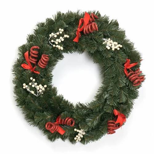 Вы любите танго? Тогда у нас для вас сюрприз – роскошный рождественский венок «Огненное танго» из качественной ПВХ-пленки. Беспроигрышное сочетание темно-зелёной хвои, красных завитушек и изящного белоснежного декора давно полюбилось многим. А значит, наш новогодний декор придется по душе каждому, кому посчастливится его получить. Новый год с «Огненным танго» запомнится вам и вашим гостям на весь грядущий год, который, несомненно, будет полон побед. А элегантный венок станет вашим любимым талисманом.