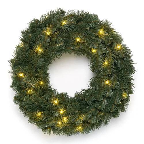 Загадочно мерцающие огоньки на фоне хвои глубокого зелёного цвета – это так красиво и завораживающе! Рождественский венок «Звездный», изготовленный из высококачественной ПВХ-пленки, понравится тем, кто убежден: новогодних огней много не бывает. «Фишка» этого украшения – гирлянда из 30 теплых LED-ламп, работающая на батарейках. «Звездный» венок никого не оставит равнодушным. Как встретишь Новый год, таким он и будет. Так отметьте его по-звездному!