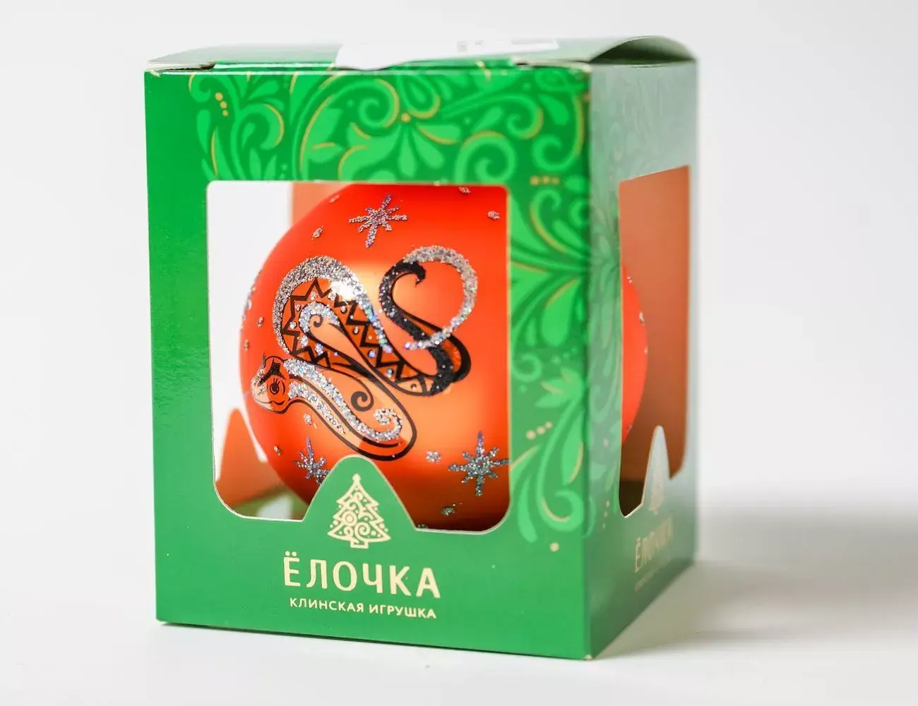 Мудрая змейка передает вам привет из волшебной новогодней сказки и спешит поздравить вас с Новым годом! А мы приготовили для вас шикарный презент – стеклянный елочный шар эффектного цвета лайма с изображением переливающейся серебром хозяйки года. Причудливо искрящиеся снежинки делают ее образ таинственным и загадочным. И мы верим: элегантная рептилия принесет удачу в грядущем году!