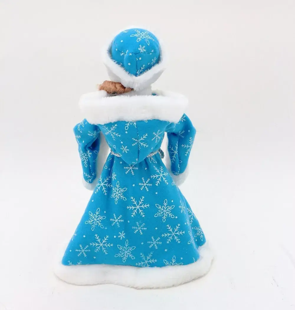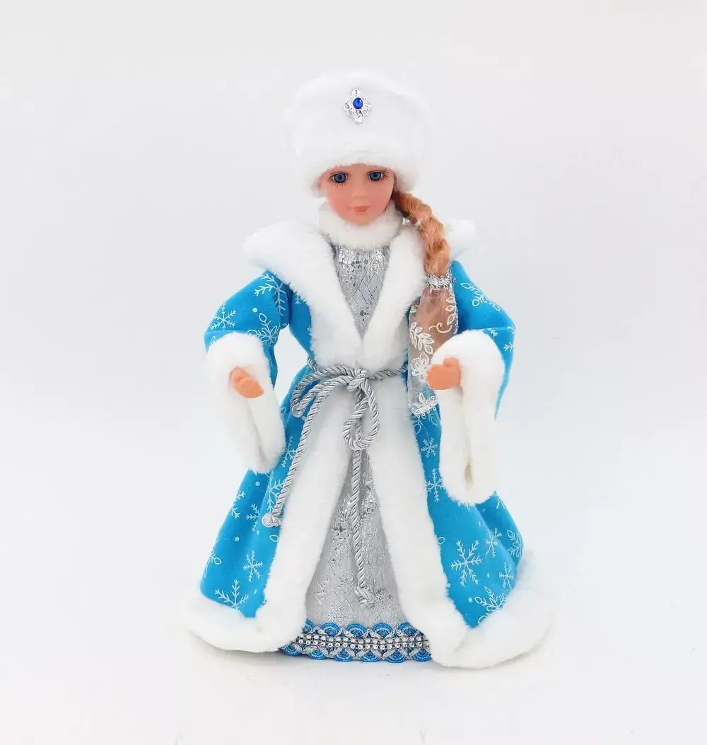 Мимо миловидной Снегурочки в кокетливой шубке небесно-голубого цвета с мехом и белоснежной шапочке с брошью невозможно пройти! Ее хорошенькое личико и русая коса вызывают искреннее умиление. Что и говорить, такая внучка Деда Мороза станет в Новый год желанной гостьей в любом доме. Посадите ее под елочку или в другое видное место, и заряд хорошего настроения вам и вашим гостям гарантирован. А если вы ее подарите родному человеку, то обязательно увидите счастливую улыбку, ведь прелестная Снегурочка от бренда Triumph Tree настраивает только на позитив!