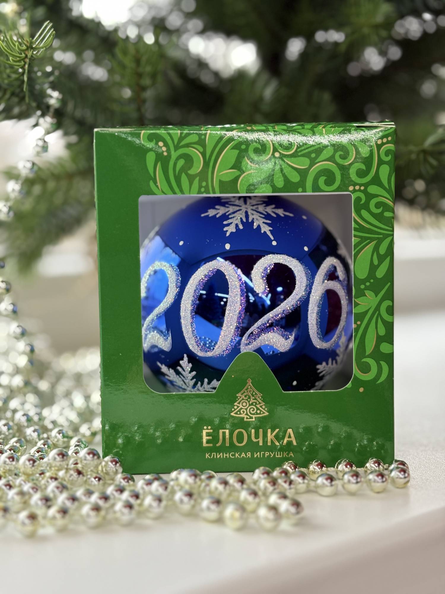 Стеклянный шар «С Новым годом» — это красивое новогоднее украшение, выполненное из стекла. Он символизирует год 2026 и доступен в двух цветах: красном и синем. Диаметр шара составляет 95 мм, что делает его удобным для размещения на ёлке.