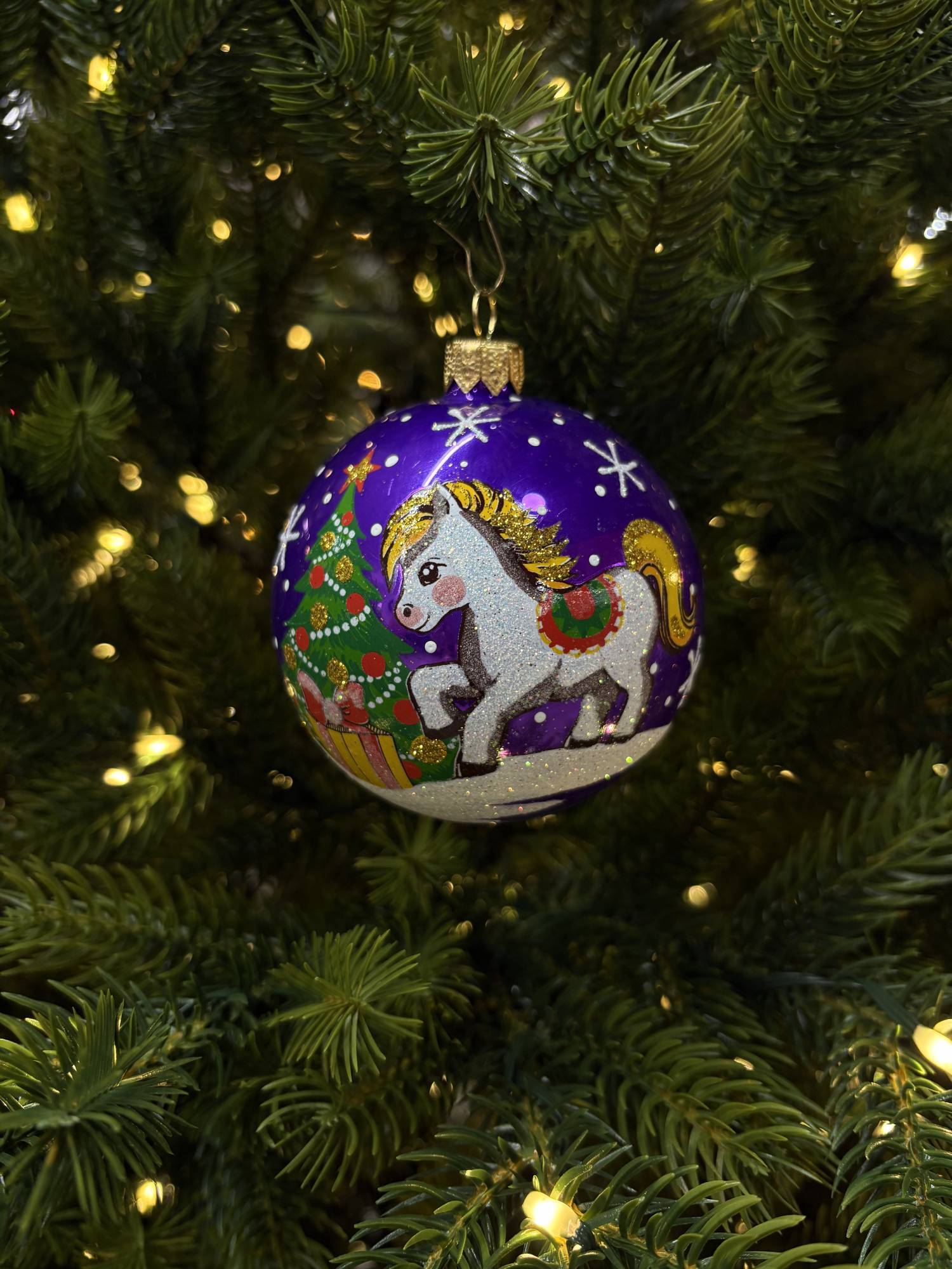 Стеклянный шар Лошадка 90 мм., фиолетовый, стекло, Ёлочка (С206/1) – купить за 600 ₽ | Мир Ёлок — ваш лучший выбор для создания волшебной атмосферы на Новый год!