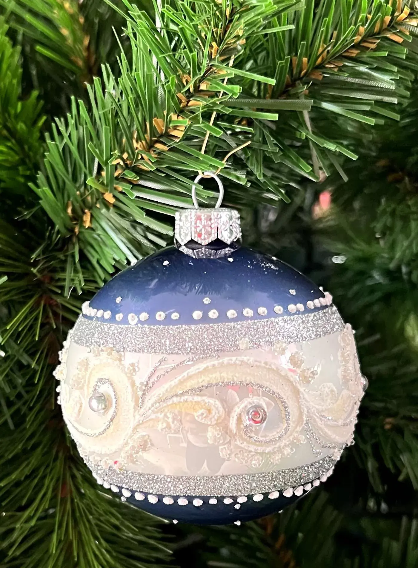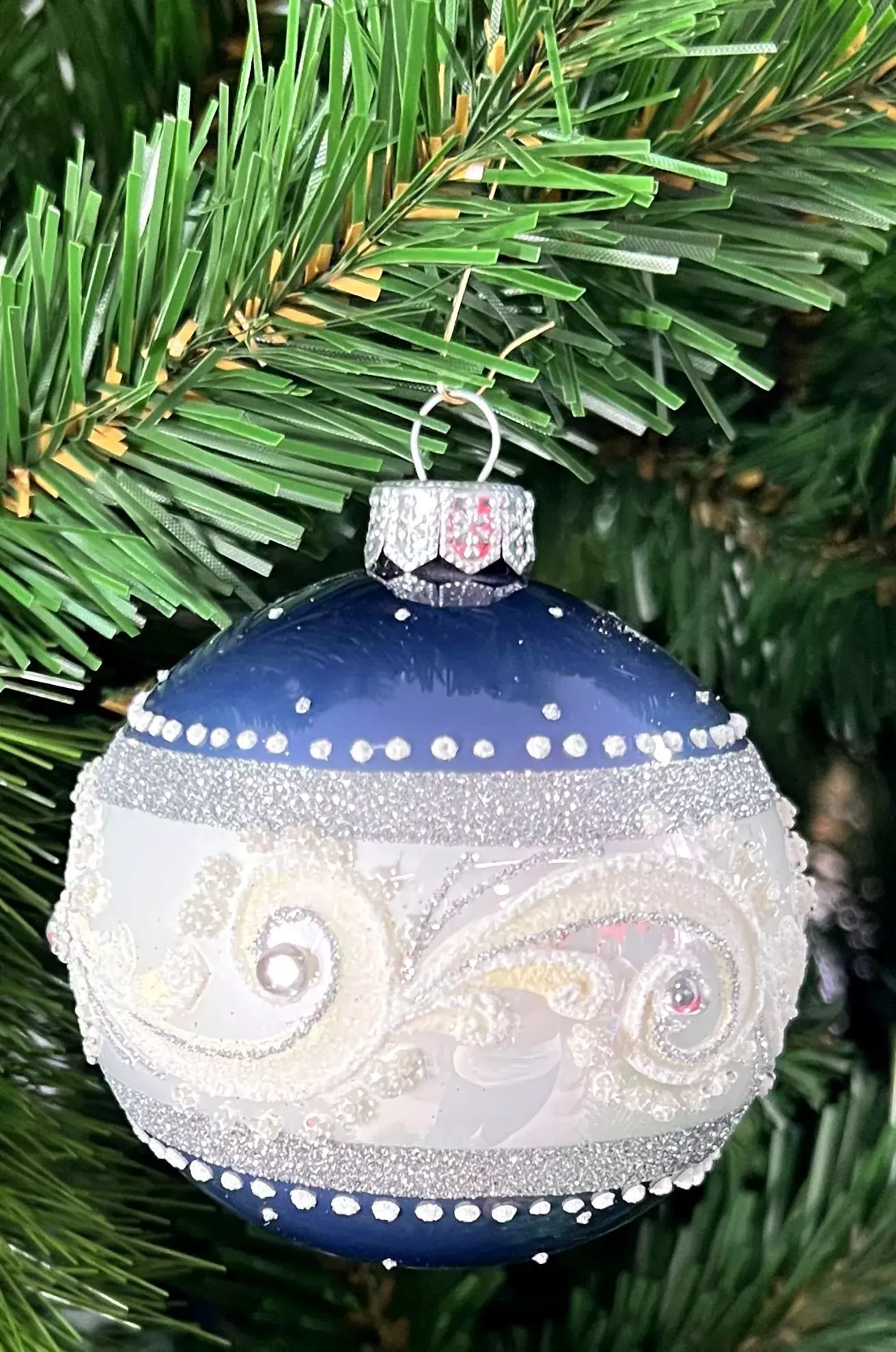 Любое явление природы прекрасно по-своему. Снежные вихри искрятся миллионами снежинок, которые на фоне чернильно-синего ночного неба просто нереально красивы. Метель прекрасна! А наутро – мороз и сверкающие узоры. Вся эта красота передана дизайнерами фирмы Irena в шаре «Бело-синяя метель».
