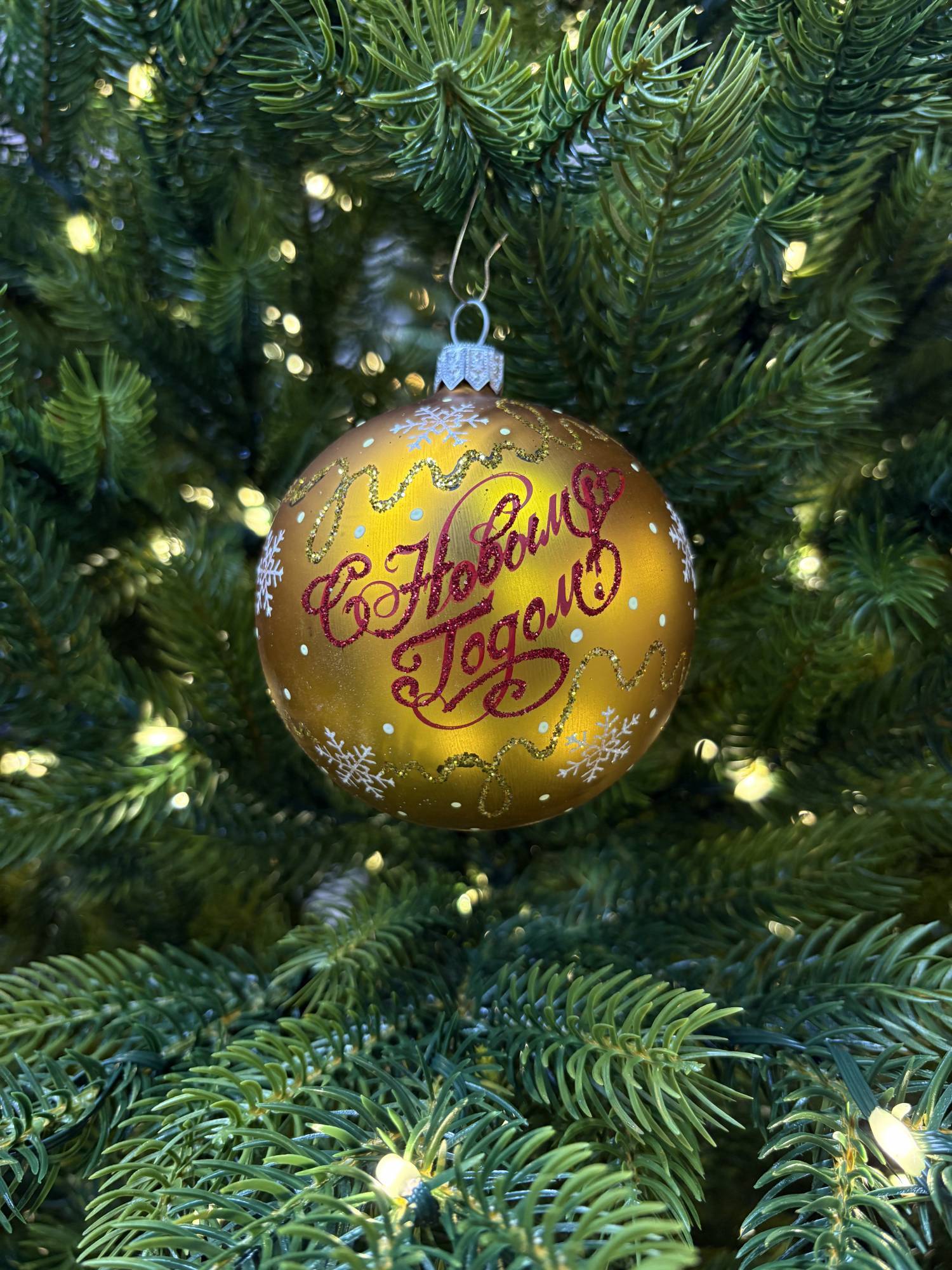 Стеклянный шар «С Новым годом» — это красивое новогоднее украшение, выполненное из стекла. Он символизирует год 2026 и доступен в трех цветах: красном, золотом и синем. Диаметр шара составляет 80 мм, что делает его удобным для размещения на ёлке.