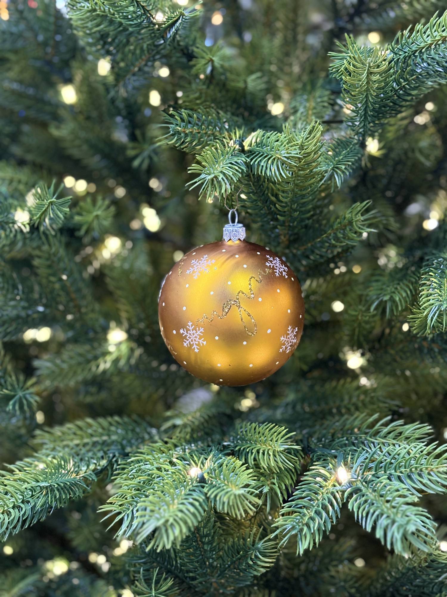 Этот шар станет отличным дополнением к вашему новогоднему декору, добавив яркости и праздничного настроения. Он подойдёт как для украшения ёлки, так и для создания тематических композиций.