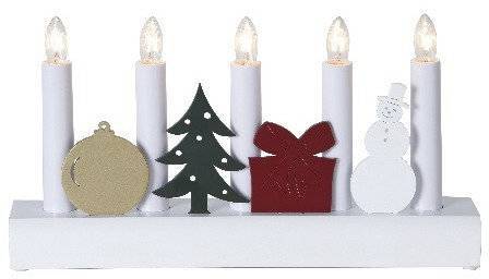 Декоративный светильник в скандинавском стиле в виде подсвечника с пятью свечами, с новогодними силуэтами на основании.