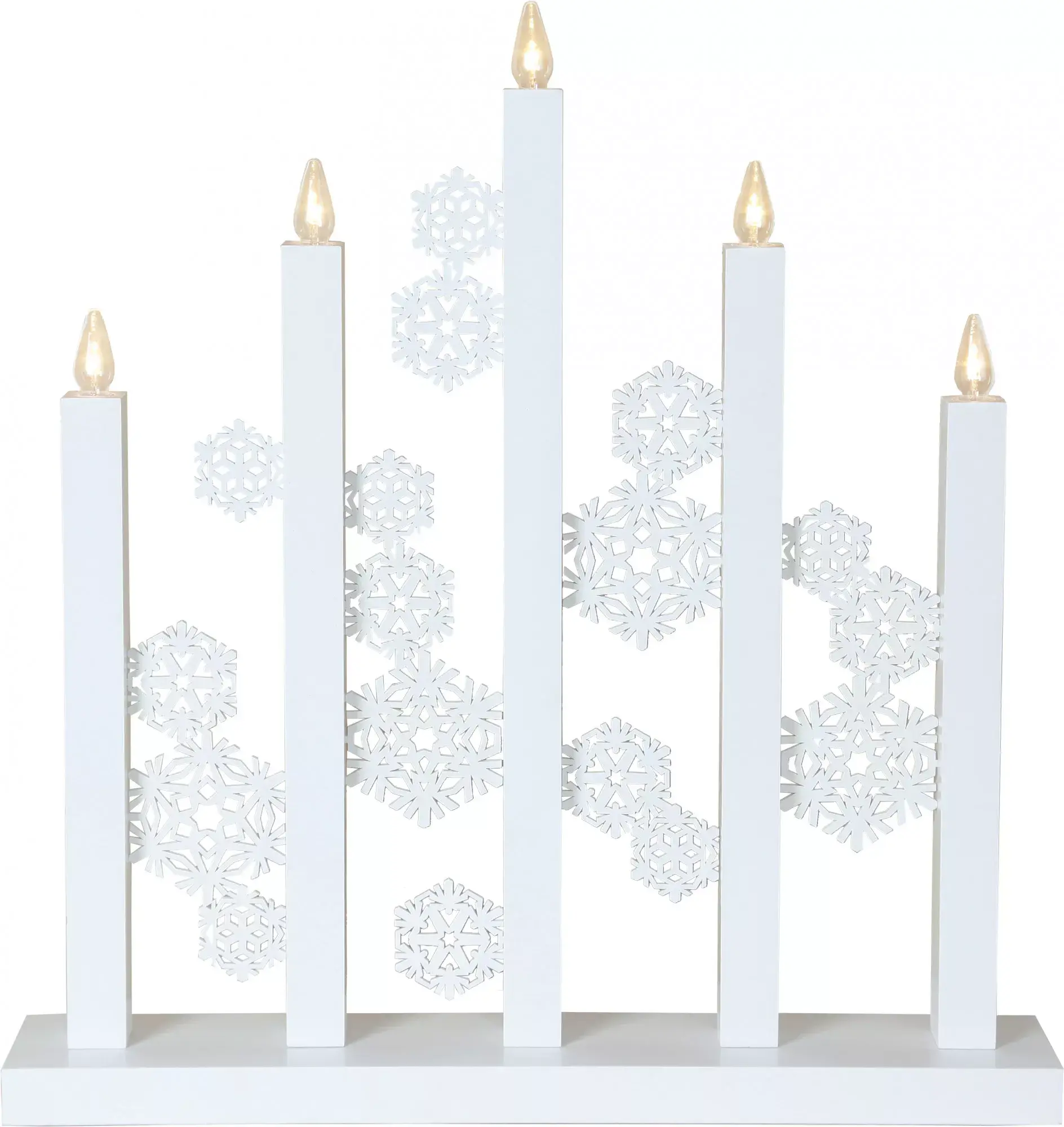 Согласитесь, снегопад в новогоднюю ночь – прекрасное и такое желанное зрелище! Но даже если природа в этом плане подвела, не беда. Положение спасет декоративный светильник «Снегопад» от Star Trading, выполненный из высококачественного дерева. Он представляет собой великолепную декорацию из белоснежных свечей и невероятно красивых резных снежинок разной величины, словно падающих на свечи.