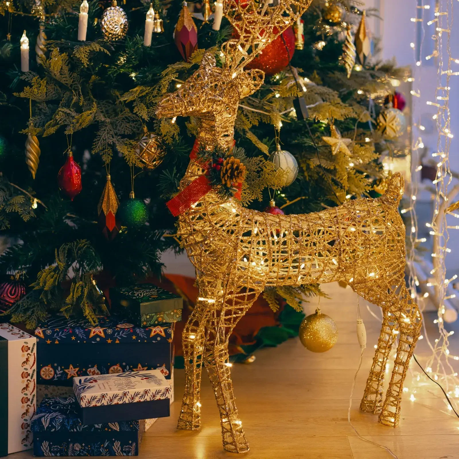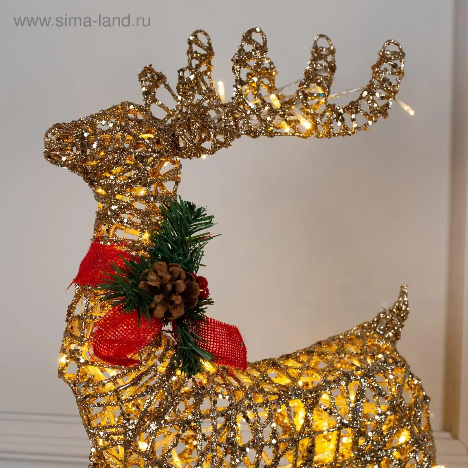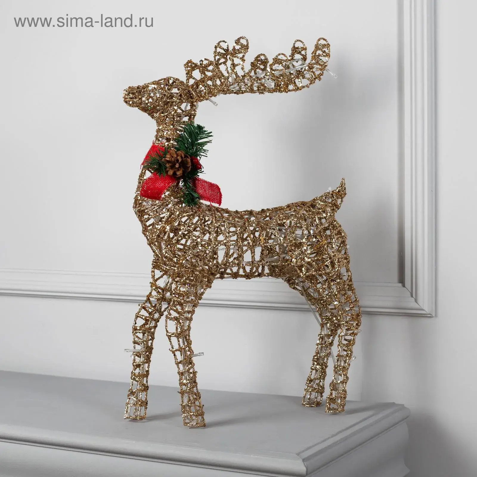 Они прекрасны, величественны, грациозны! Золотистые олени из металла выглядят богато и приглянутся даже самому искушенному покупателю. Их благородное мерцание может с легкостью соперничать с блеском подлинного золота. Представляем вашему вниманию объемные светодиодные фигуры северного красавца размером 35 × 60 × 10 см, цвета червонного золота, а также размером 50 × 85 × 18 см более мягкого золотого оттенка.
