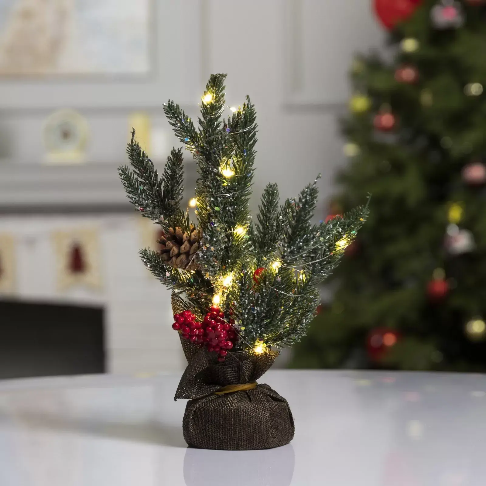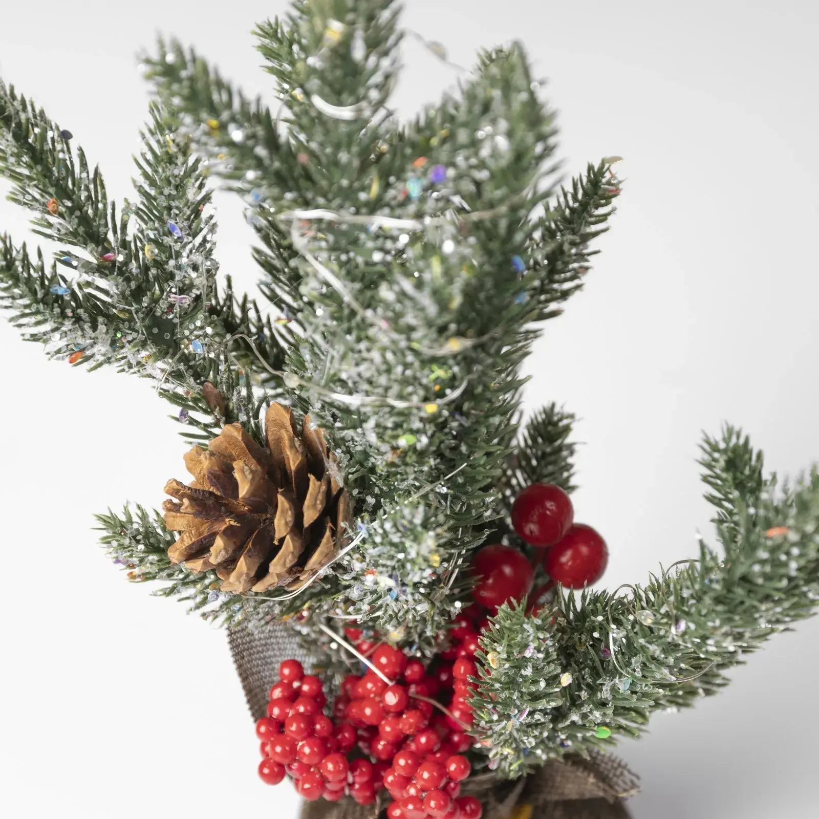 На Новый год ёлок много не бывает! Поэтому светодиодная фигура из пластика премиум качества в виде стройной, симпатичный елочки, украшенной яркими, сочными ягодками и шишками вам точно не помешает. Размер этого шедевра – 11.5 × 27 × 7.5 см. Лесная красавица насыщенного зелёного цвета услаждает взор веселыми огоньками, которые создают поистине волшебную атмосферу.