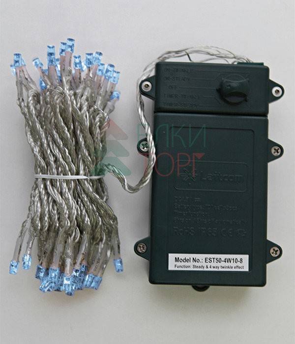 Светодиодная гирлянда 5 м., 3 батарейки типа D 4.5V, 50 LED ламп небесно голубого цвета, таймер, прозрачный провод, LTC (EST50-4W10-8SB) – купить за 2 000 ₽ | Мир Ёлок — ваш лучший выбор для создания волшебной атмосферы на Новый год!