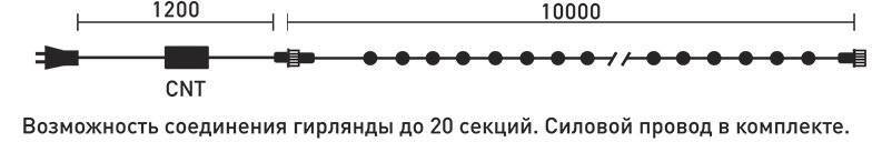 Данная светодиодная гирлянда с желтыми LED лампочками, и эффектом мерцания (на нити каждый пятый светодиод мерцает с периодичностью 1 раз в секунду), принесет Вашему празднику дополнительную красоту, эту гирляндную нить можно объединить в длинную сеть (возможность подключения до 10 секций общей длинной 100 метров) за счет коннектора, который установлен на гирлянде. Степень защиты IP44 позволит использовать эту гирлянду на улице ( при температуре до -30оС). Силовой провод для подключения поставляется в комплекте.