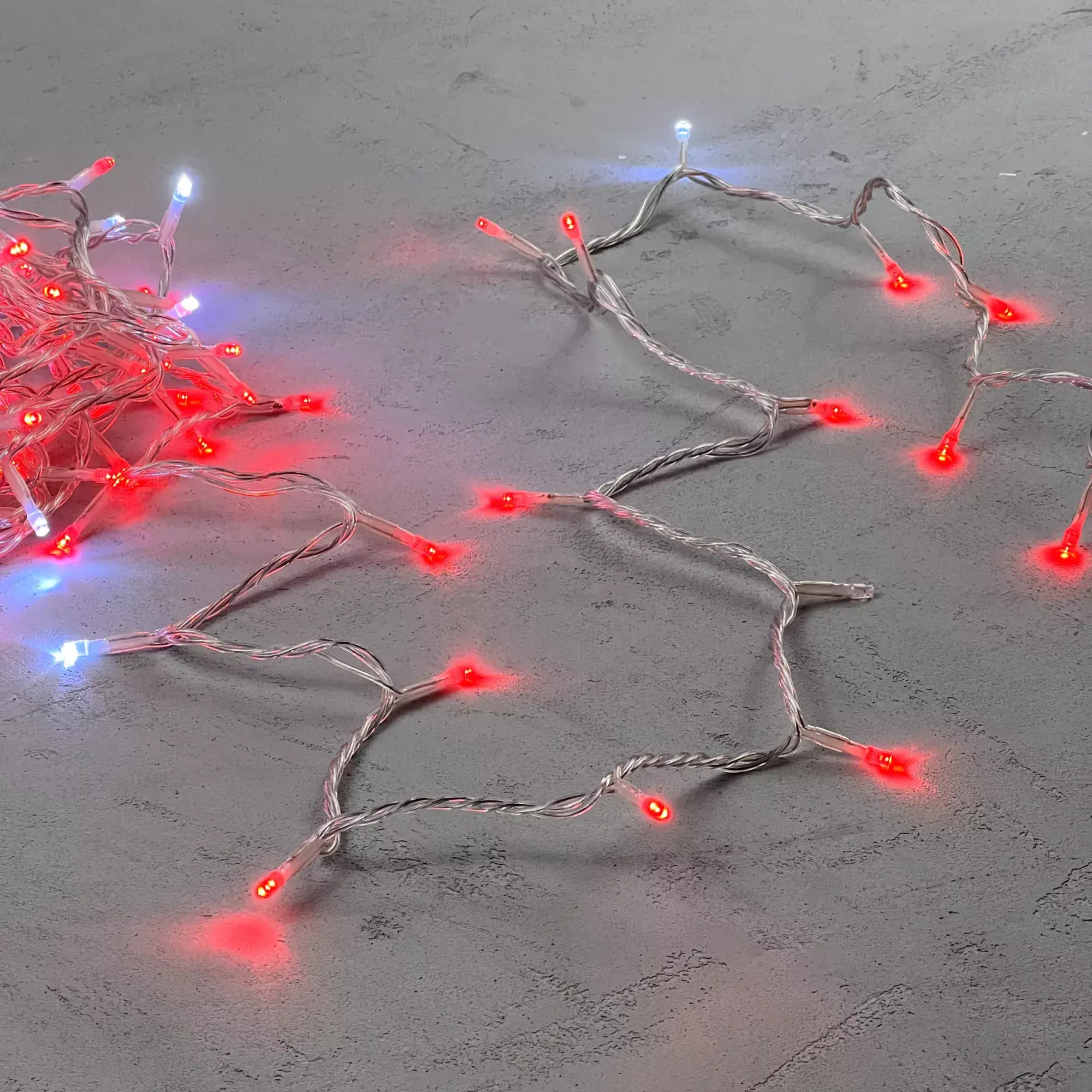 Данная светодиодная гирлянда с красными LED лампочками, и эффектом мерцания (на нити каждый пятый светодиод белого цвета мерцает с периодичностью 1 раз в секунду), принесет Вашему празднику дополнительную красоту, эту гирляндную нить можно объединить в длинную сеть (возможность подключения до 10 секций общей длинной 100 метров) за счет коннектора, который установлен на гирлянде. Степень защиты IP44 позволит использовать эту гирлянду на улице ( при температуре до -30оС). Силовой провод для подключения поставляется в комплекте.