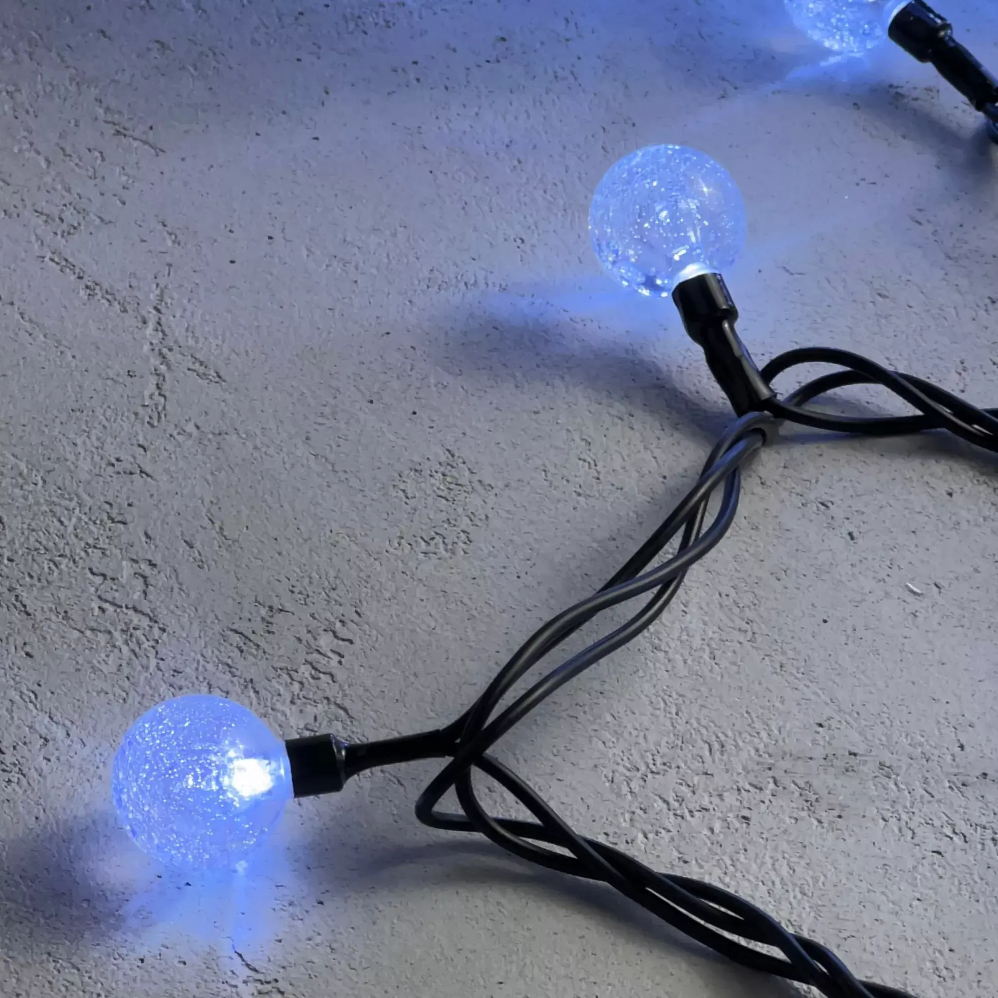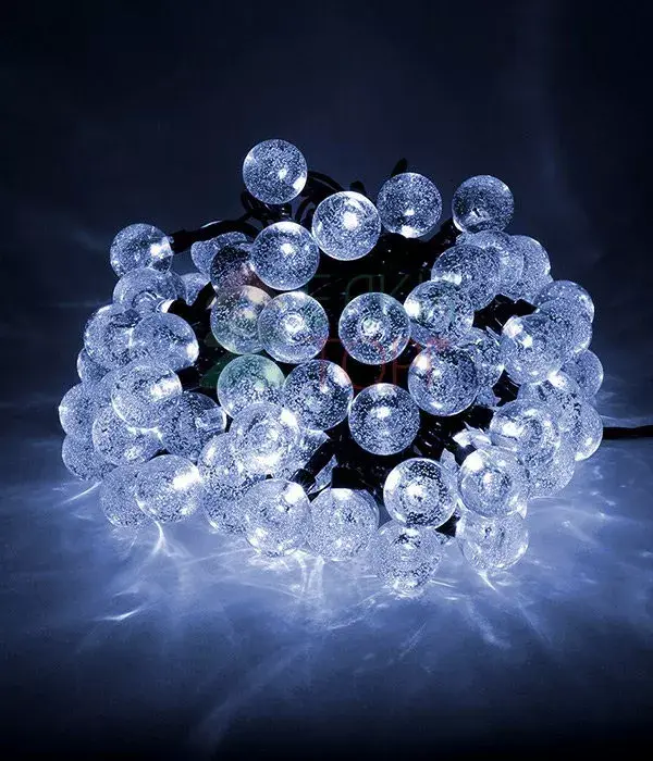 Светодиодная гирлянда шарики Пузырьки с белыми LED светодиодом станет отличным украшением Вашего праздника! Светодиод защищен прозрачной колбой, выполненной в форме шарика, благодаря этому достигается яркое свечение.