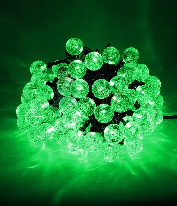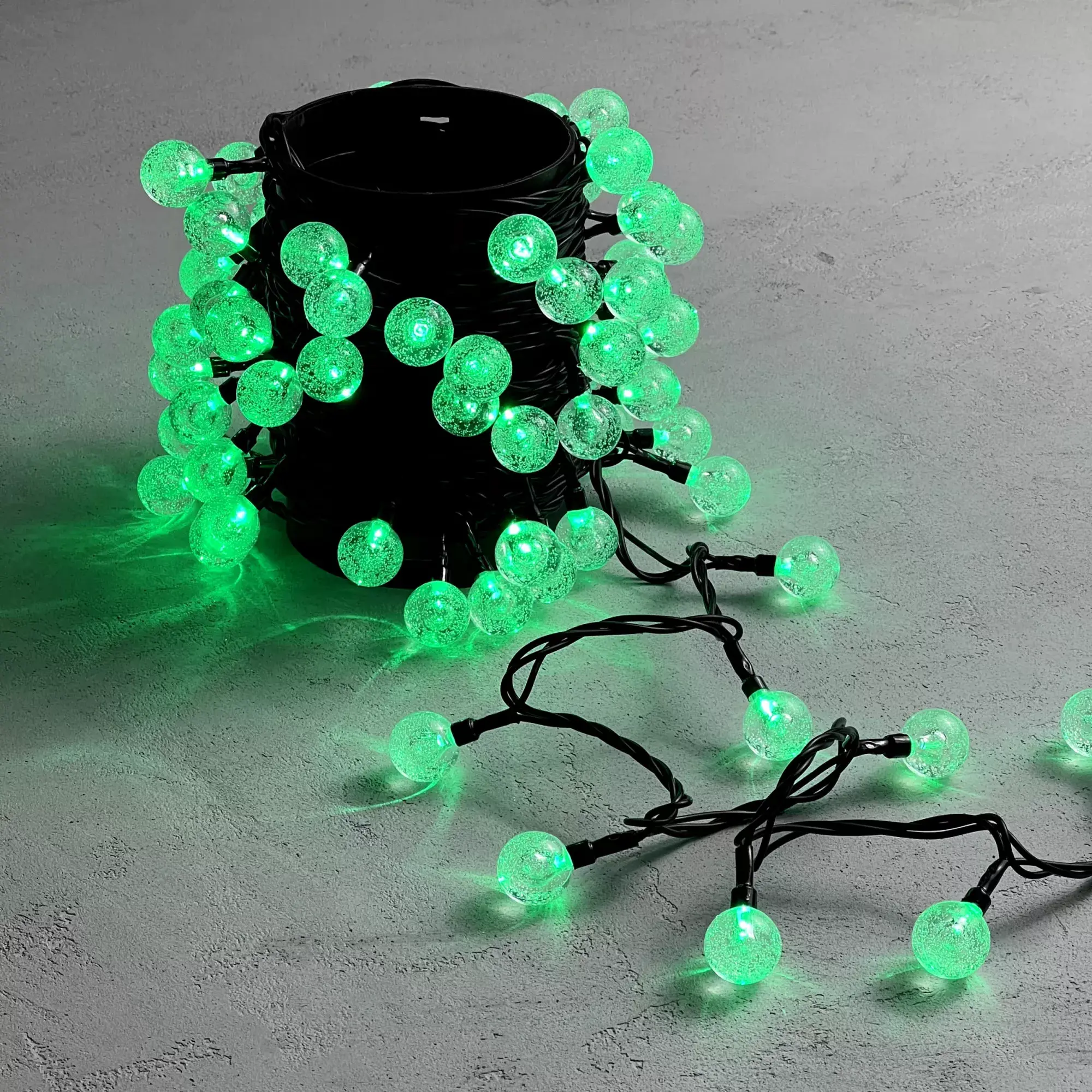 Светодиодная гирлянда шарики Пузырьки с зелеными LED светодиодом станет отличным украшением Вашего праздника! Светодиод защищен прозрачной колбой, выполненной в форме шарика, благодаря этому достигается яркое свечение.