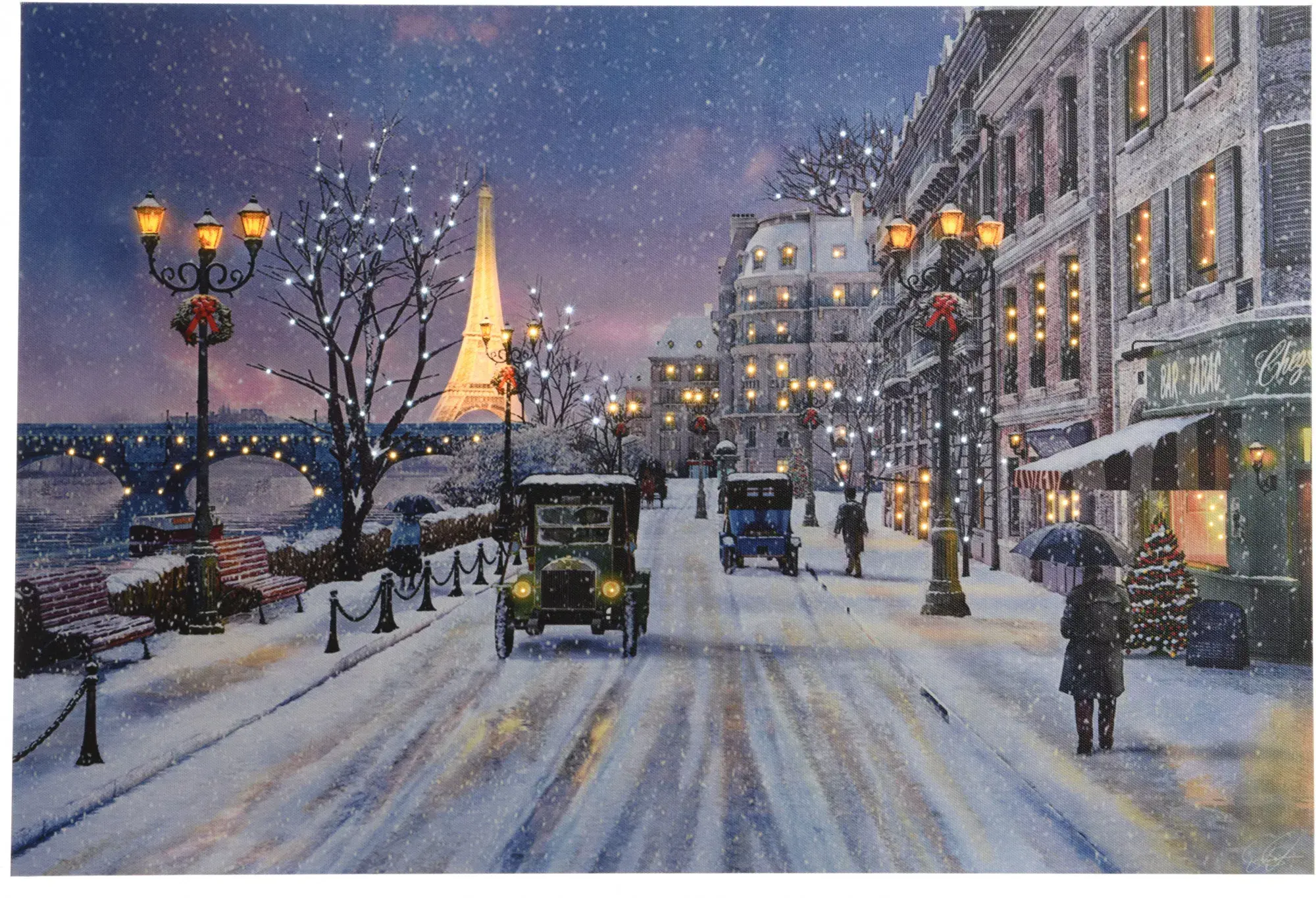 Подобно машине времени светодиодная картина "Рождественский Париж" переносит Вас на заснеженную набережную Сенны, усыпанную праздничными огнями, пропитывая каждую клеточку ожиданием рождественского чуда.