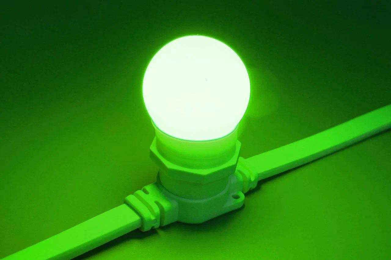 Светодиодная Лампа для гирлянды Белт-лайт, 220В, цоколь Е27, 2 Вт, d=45 мм, пластиковая колба, металлический цоколь. Цвет свечения - желтый. Предназначена для внутреннего и уличного применения.