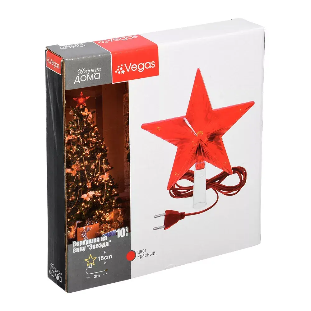 Светодиодная макушка Звезда красная, 10 LED ламп, 15*15 см., 220В, зеленый провод, Vegas (55097) – купить за 500 ₽ | Мир Ёлок — ваш лучший выбор для создания волшебной атмосферы на Новый год!