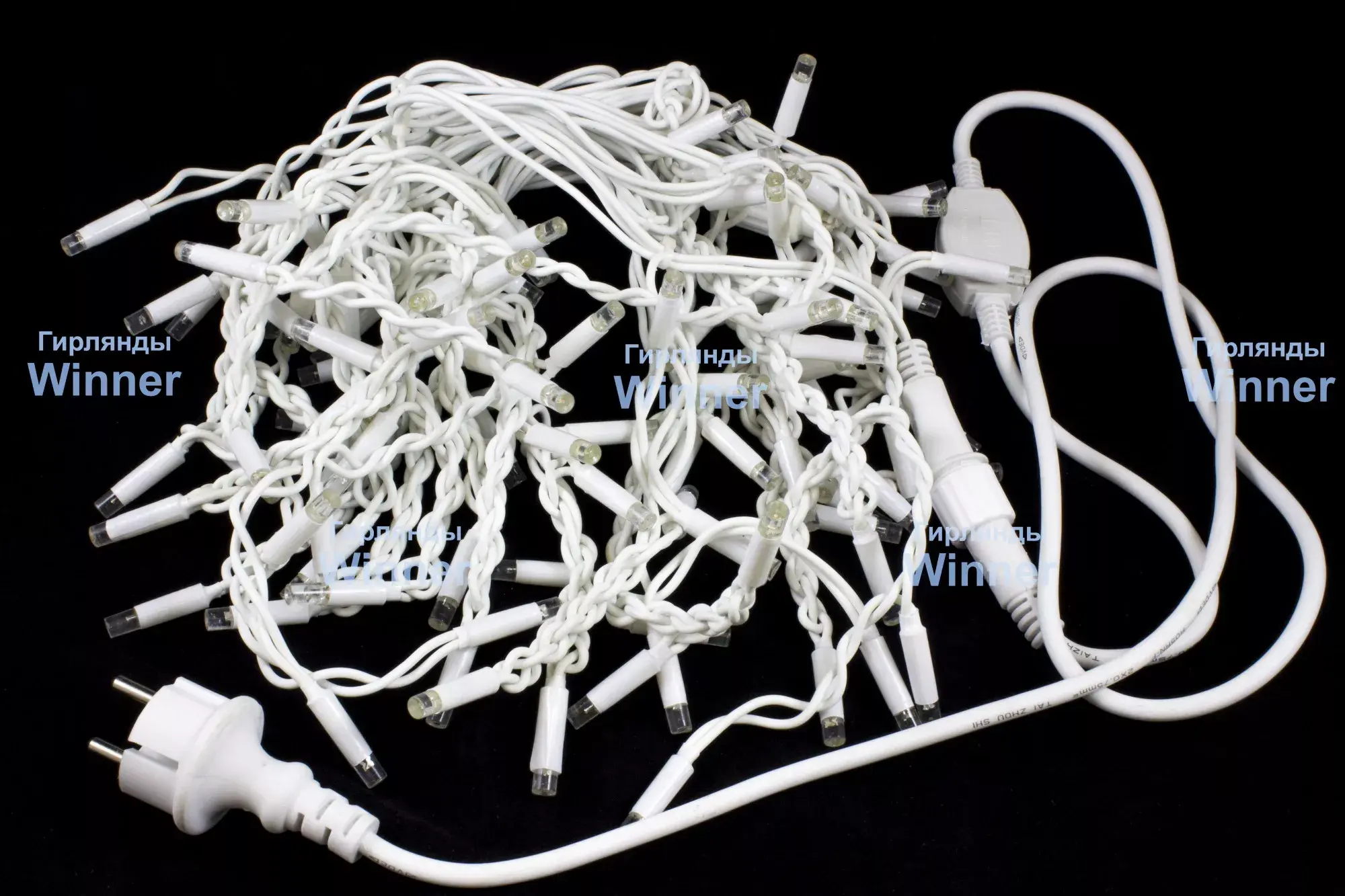 Светодиодная мерцающая бахрома, от производителя Winner, предназначена для использования на улице. Длина бахромы 5 метров, вертикальные нити имеют длину 0.3, 0.4 и 0.6 метров. На бахроме имеется коннектор для соединения гирлянд в последовательную цепь. Особенностью этой модели являются мерцающие диоды, надежный каучуковый провод, позволяющий использовать гирлянду в уличных условиях.