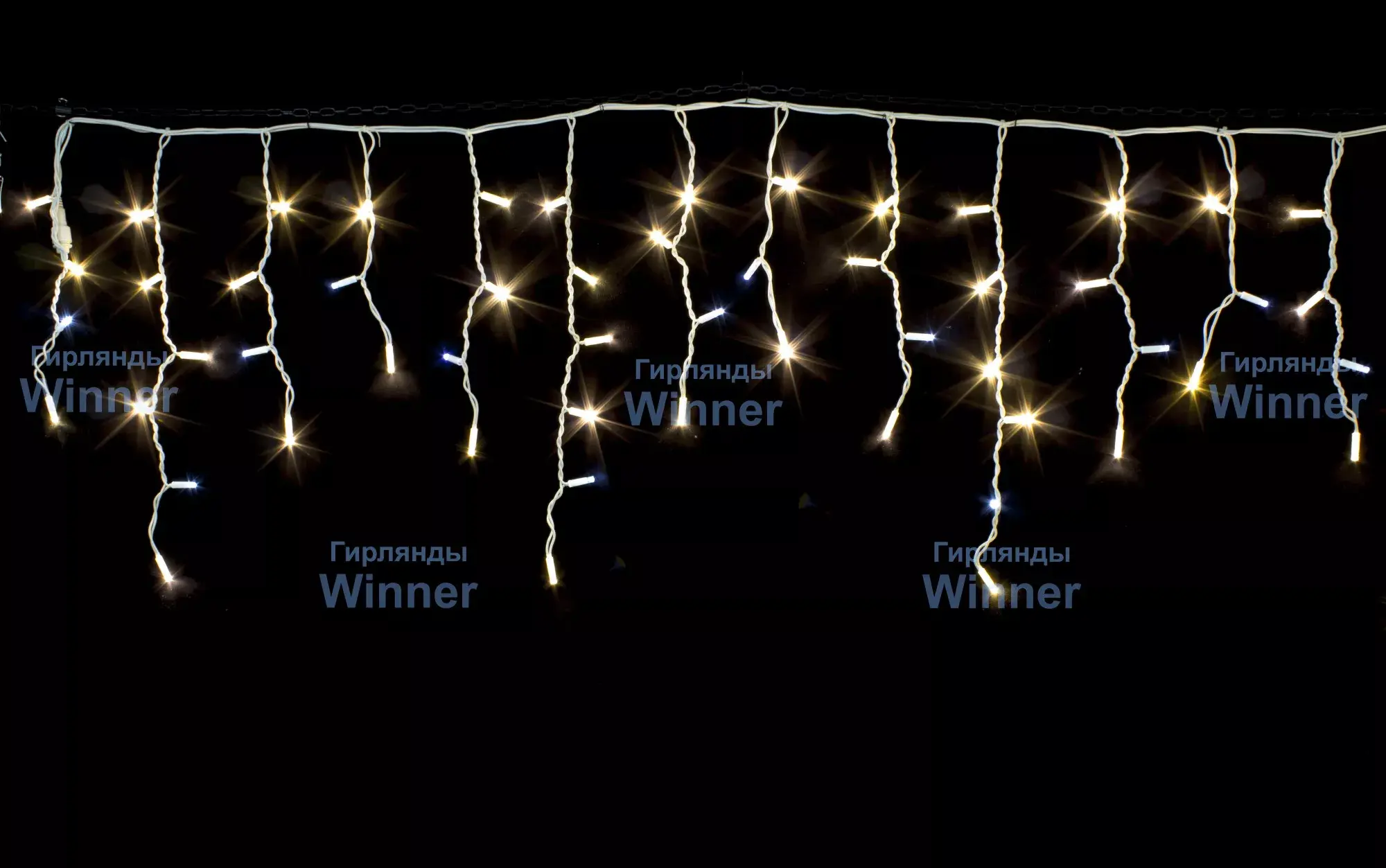 Светодиодная мерцающая бахрома, от производителя Winner, предназначена для использования на улице. Длина бахромы 5 метров, вертикальные нити имеют длину 0.3, 0.4 и 0.6 метров. На бахроме имеется коннектор для соединения гирлянд в последовательную цепь. Особенностью этой модели являются мерцающие диоды, надежный каучуковый провод, позволяющий использовать гирлянду в уличных условиях.