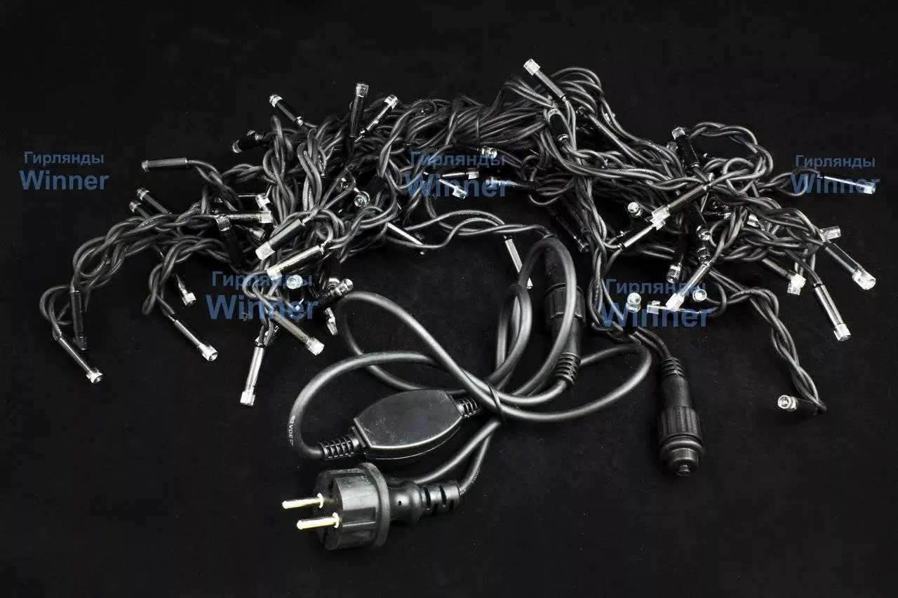 Светодиодная мерцающая бахрома, от производителя Winner, предназначена для использования на улице. Длина бахромы 5 метров, вертикальные нити имеют длину 0.3, 0.4 и 0.6 метров. На бахроме имеется коннектор для соединения гирлянд в последовательную цепь. Особенностью этой модели являются мерцающие диоды, надежный каучуковый провод, позволяющий использовать гирлянду в уличных условиях.