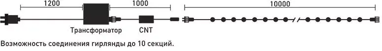 Внимание, работа гирлянды невозможна без трансформатора (трансформатор в комплект не входит).