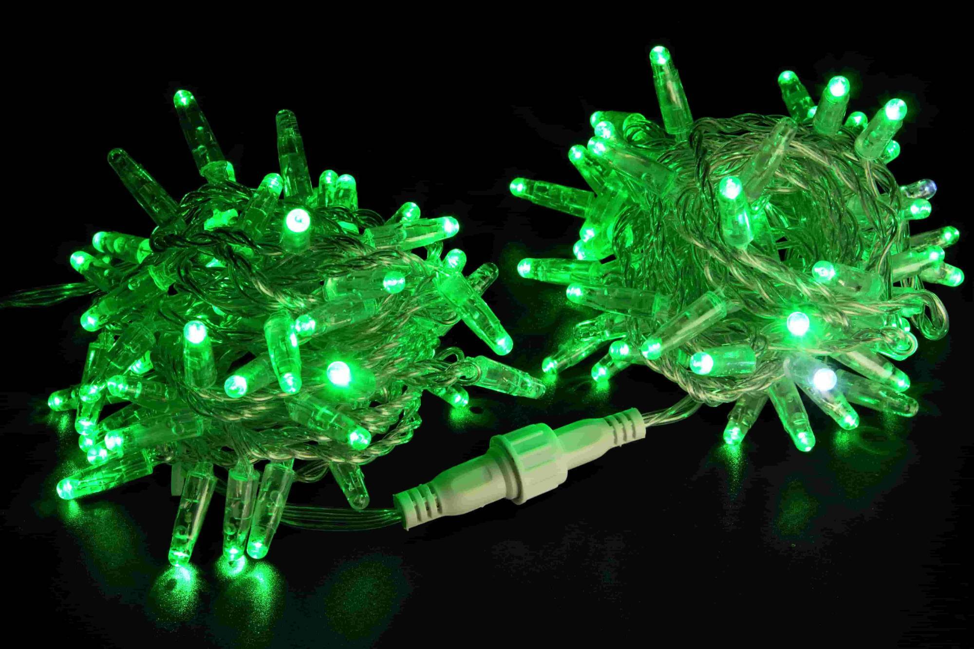 Светодиодная нить 100 зеленых LED ламп, 10 м., 220В, мерцание, прозрачный провод ПВХ, Teamprof (TPF-S10CF-220V-CT/G)