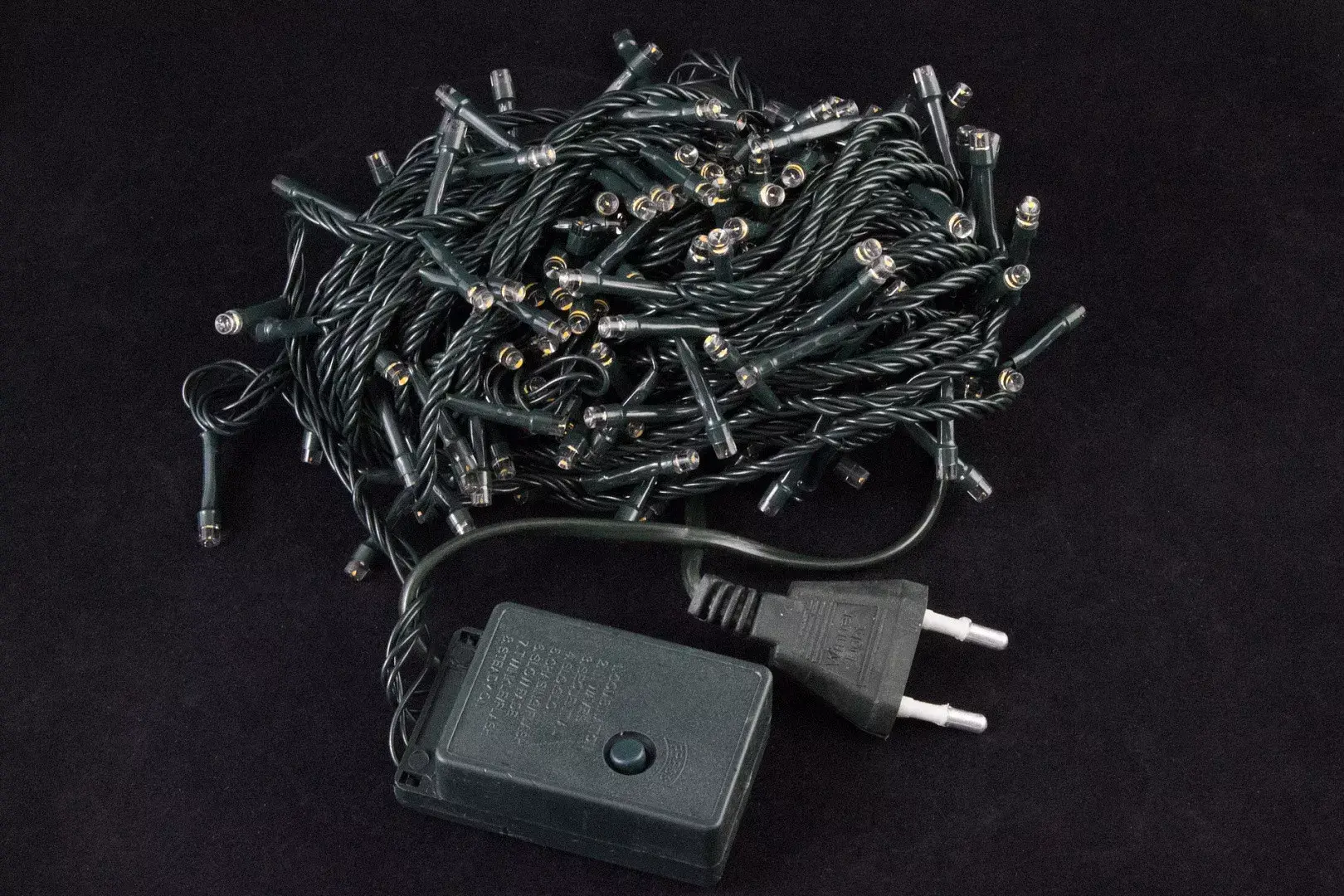 Длина гирлянды 13,5 метров, по все длине равномерно располагаются 200 LED лампочек. Провод черный, силиконовый.