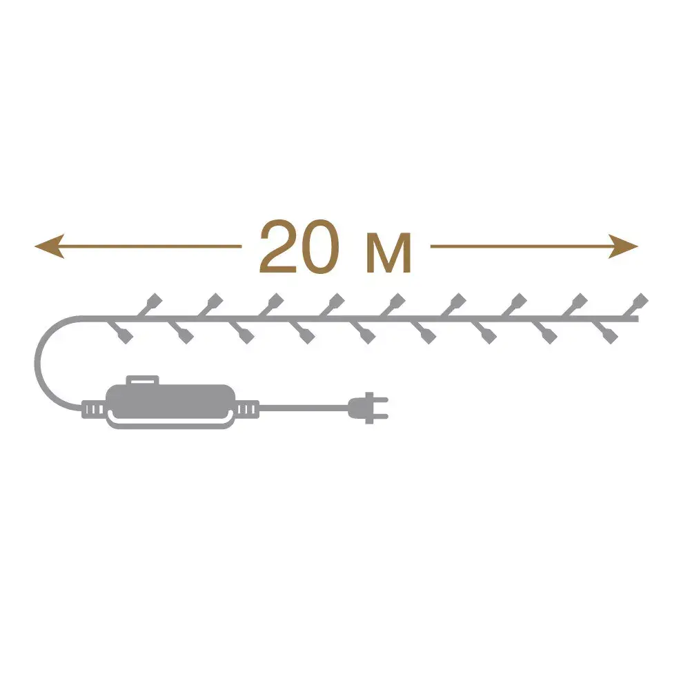 Данная модель предназначена для создания декоративной и праздничной иллюминации, отлично подойдет для украшения жилых и торговых помещений, елок, декоративных растений, предметов интерьера, колонн и других архитектурных элементов. Использование гирлянды возможно только внутри помещений! Так же у гирлянды имеется встроенный контроллер на 8 режимов работы! Длина гирлянды 20 метров, длина провода подключения 3 метра.