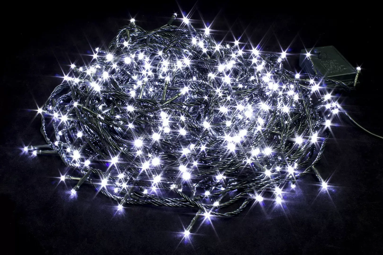 Длина гирлянды 35 метров, по все длине равномерно располагаются 500 LED лампочек. Провод черный, силиконовый.