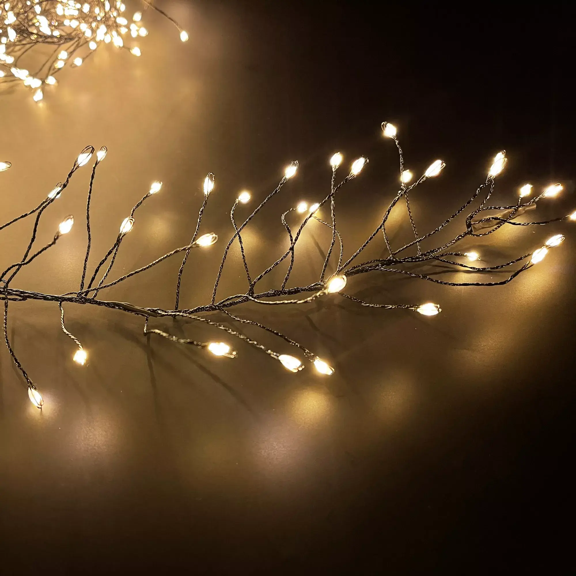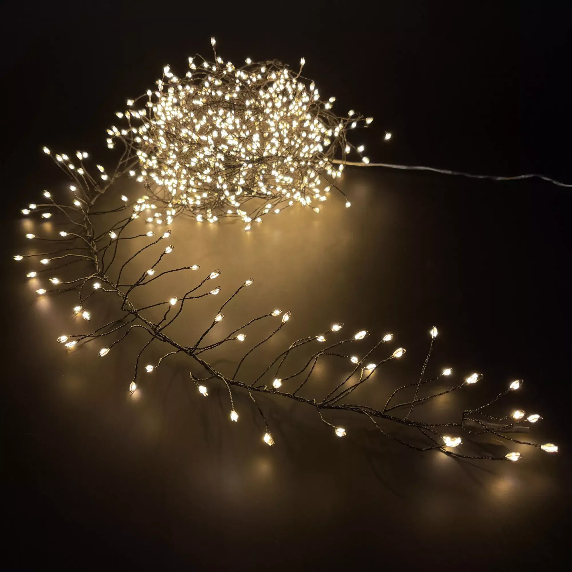 Декоративная кластерная гирлянда - это изысканное украшение для Вашего праздника. Спектр применения этой гирлянды очень велик, ей можно украсить хвойную красавицу, задекорировать предметы интерьера, создать световую композицию. Особенность гирлянды в светодиодах: они выполнены в форме капли, расстояние между лампами очень маленькое. Лампы выполнены по типу росы, но имеют размер Макро. Каждый светодиод расположен на индивидуальной ножке, что добавляет объемности гирлянде. Провод выполнен из проволоки, что позволяет придавать гирлянде любую форму. Встроенный контроллер позволит подобрать Вам подходящий режим свечения из 8 предлагаемых. Для подключения гирлянды не требуются дополнительные аксессуары, она готова к использованию прямо из коробки.