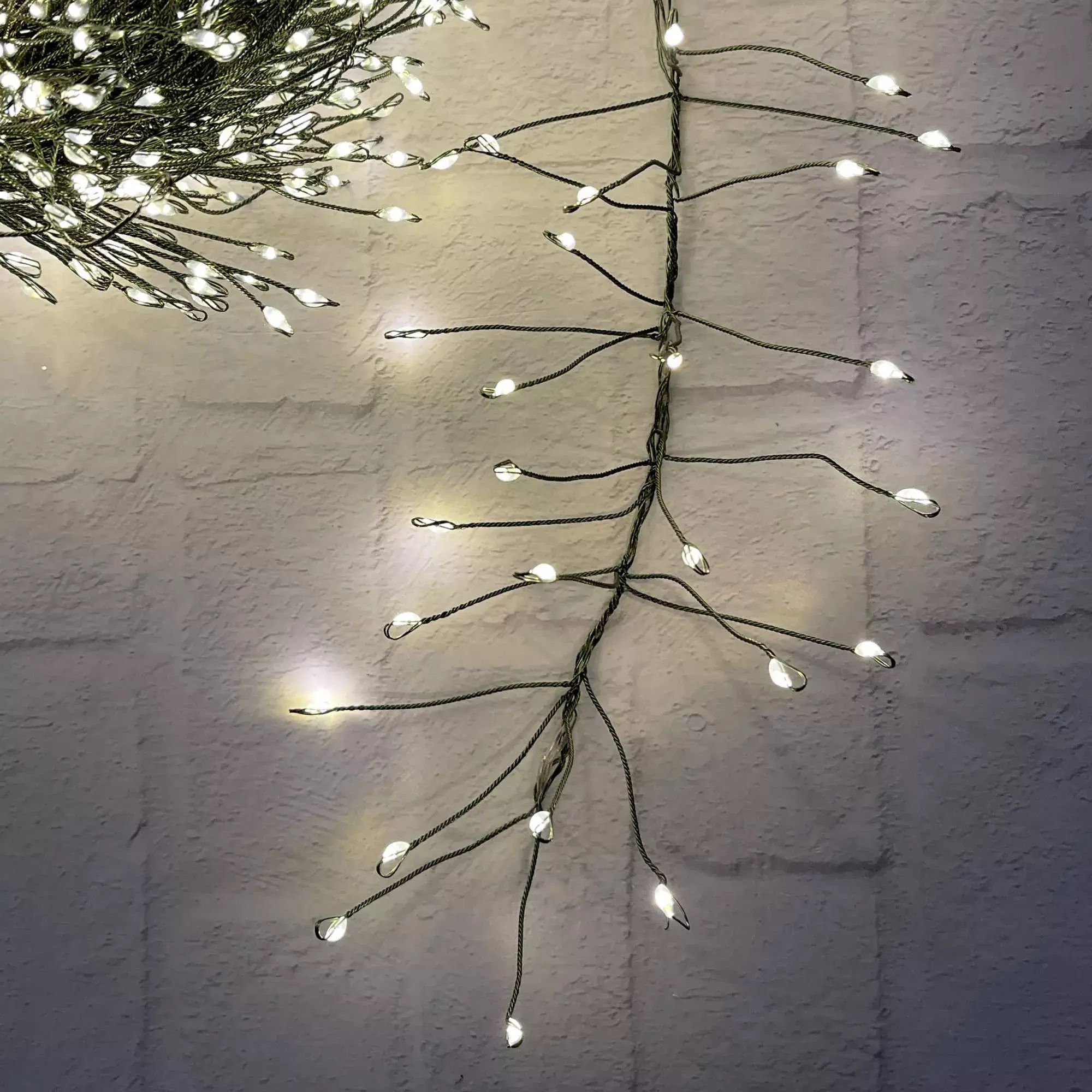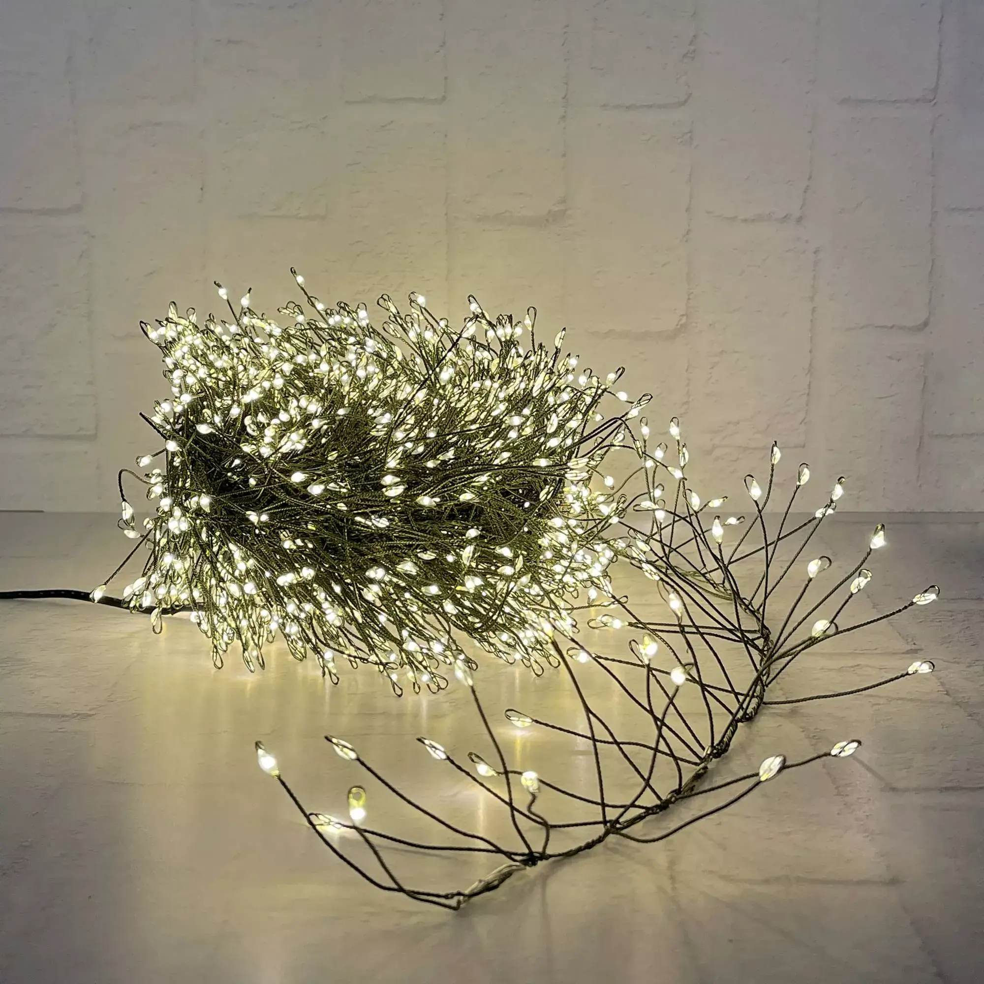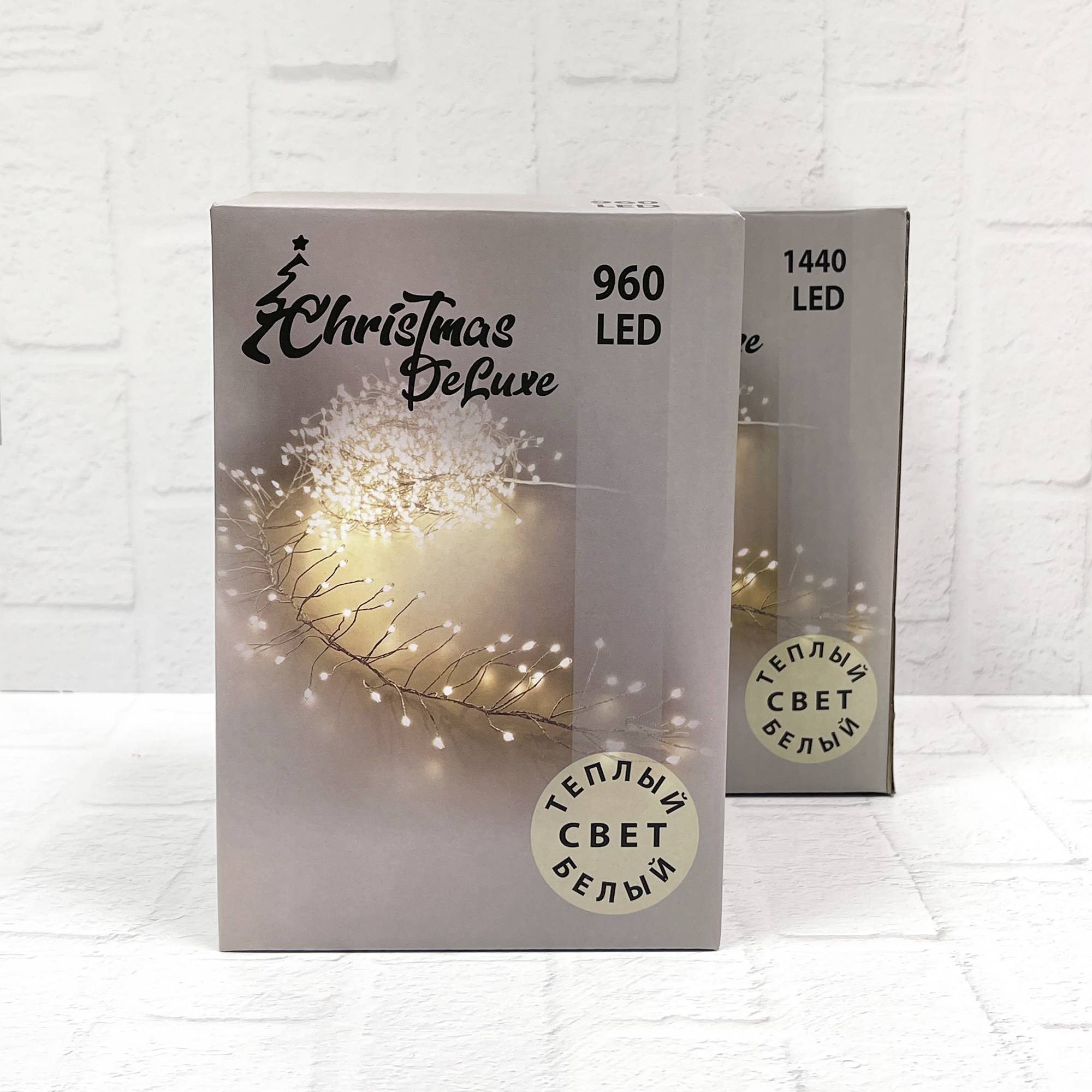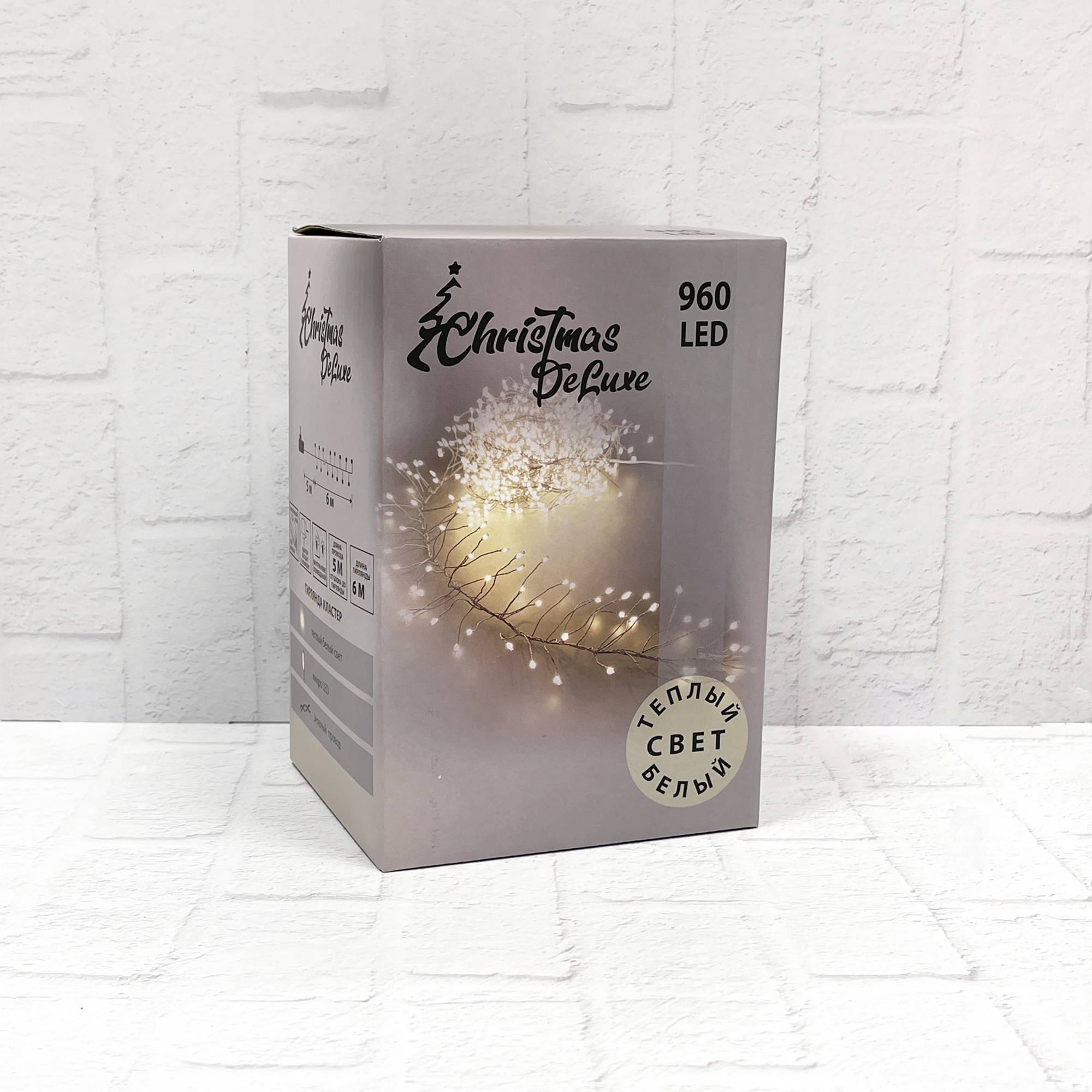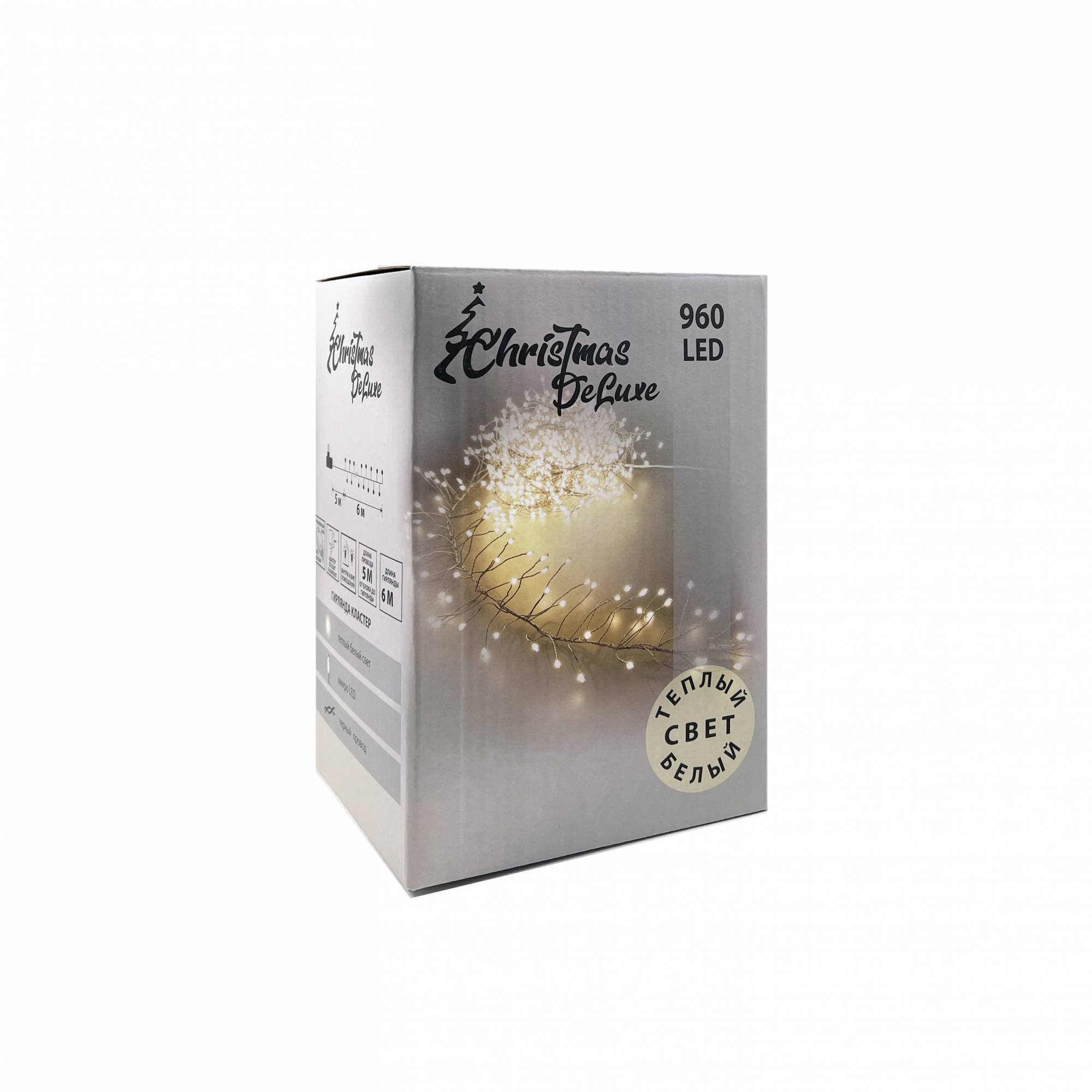 Сегодня все больше и больше покупателей предпочитает кластерные гирлянды. Отличное решение! Светодиодная нить-кластер из 960 теплых белых ламп с зелёным проводом нереально крутая. У нее множество «отростков», благодаря которым она смотрится богато, и 8 режимов работы. Включите такую гирлянду в новогоднюю ночь и наслаждайтесь фееричным зрелищем, которое точно запомнится на всю жизнь!