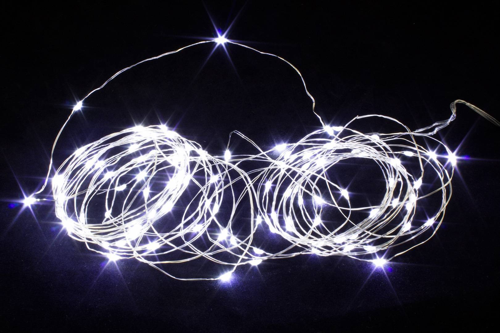 Светодиодная нить Роса предназначена для использовании в помещении, питание от батареек. Отлично подходит для украшения различных предметов интерьера, так же можно создать новогодний костюм, украсив его такой гирляндой.
