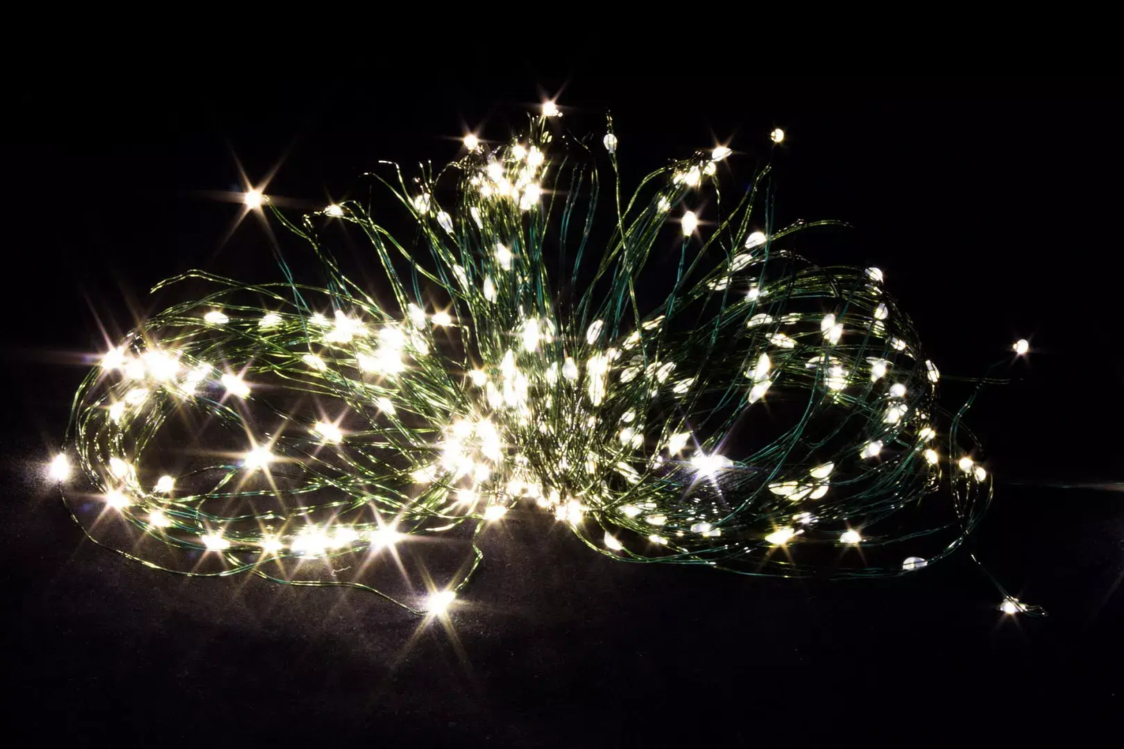 Гирлянда состоит из тонкого и незаметного провода-проволоки с 150 яркими LED лампочками, которые создают впечатление парящих в воздухе огоньков. Проводу можно придать любую форму и она надолго сохранится неизменной. Гирлянда работает от 3-х батареек типа АА или от USB. Гирляндой можно украсить новогоднюю елку, оконный проем, стену, зеркало и многие другие предметы внутри помещения. Так же гирлянда данного типа не боится влаги и ее можно вешать на улицу главное защитить от влаги блок с батарейками.