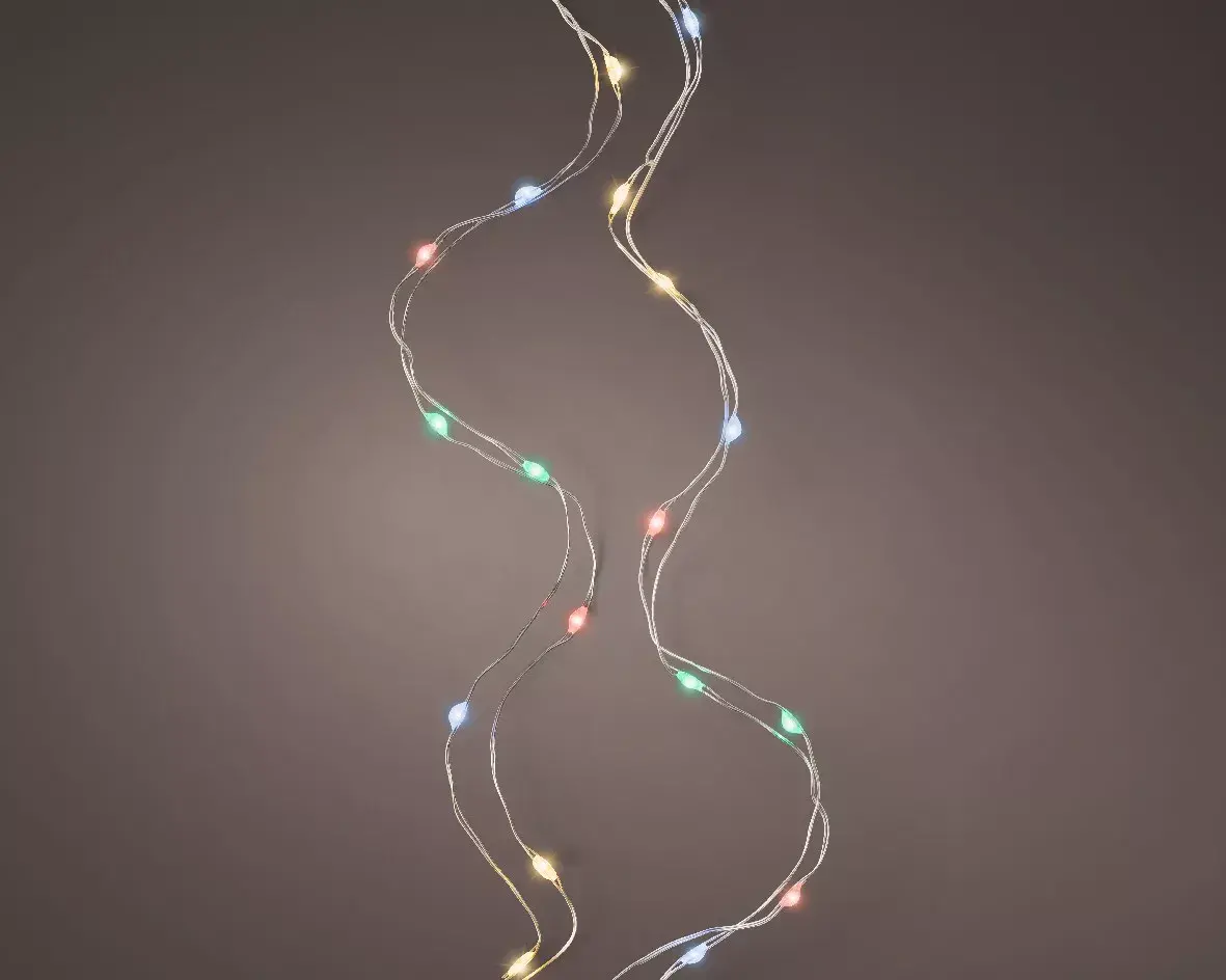 Светодиодная нить Роса 40 разноцветных LED ламп, 1.95 м., на батарейках, серебряный провод, Kaemingk (481758)