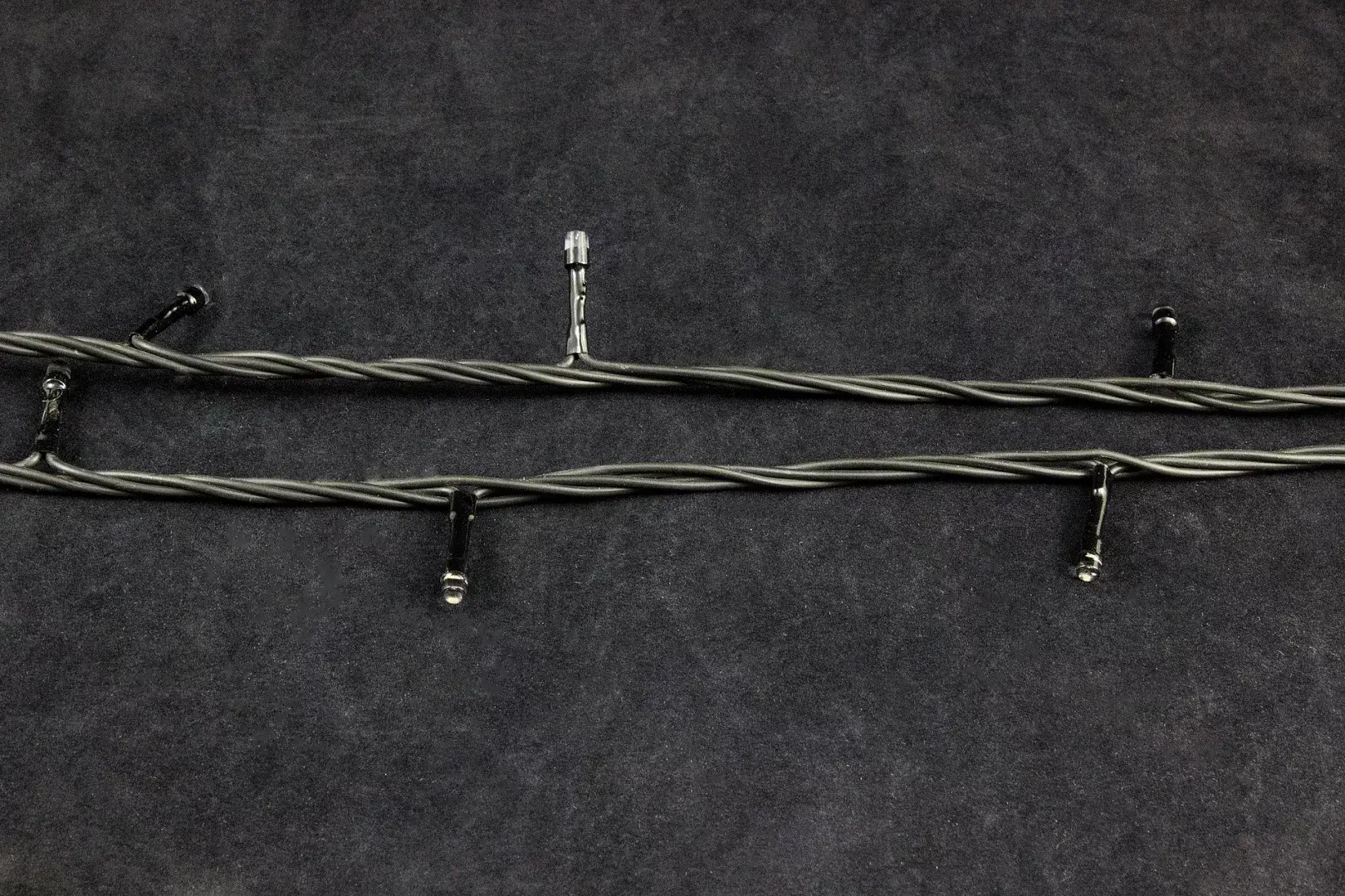Длина уличной гирлянды 40 метров, по всей гирлянде равномерно располагаются 400 теплых белых LED ламп, среди которых есть flesh (мерцающие) диоды. Морозостойкий, водонепроницаемый, черный ПВХ провод идеально подходит для использования гирлянды на улице. Конструкция светодиодной гирлянды со степенью защиты IP54 обеспечивает надежность и абсолютную безопасность в её эксплуатации. Уличная гирлянда работает от сети 220 вольт, мощность 3,5 Вт. Гирлянды данного типа соединяются между собой, что позволяет нарастить гирлянду в длину и создать уникальные композиции. Уличная гирлянда отлично подойдет для иллюминации фасада вашего дома, беседок или больших веток деревьев.