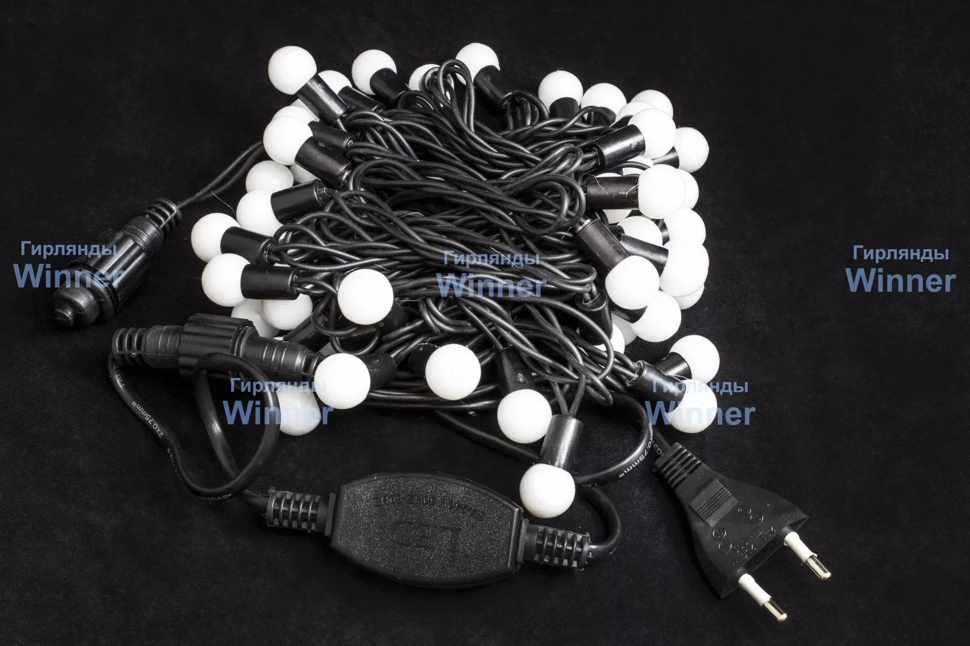 Светодиодная нить шарики, от производителя Winner, отлично подойдет для украшения внутри помещений и на улице. Особенностью работы является автоматическая смена цветов, каждый шарик перебирает два цвета. На конце нити установлен коннектор, который позволяет соединять гирлянды между собой.