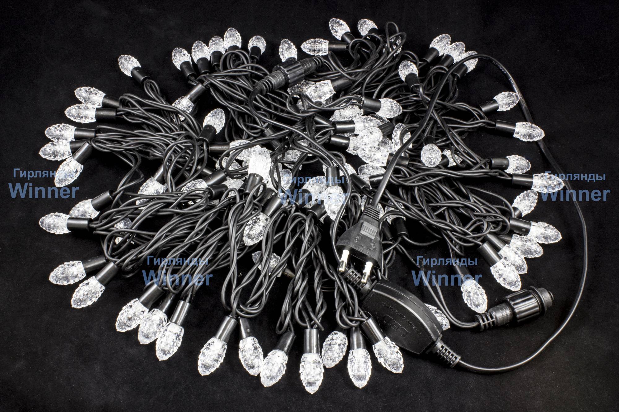 Светодиодная нить Шишки от производителя Winner, предназначена для использования на улице. У данной модели фигурный колпачок в форме шишки, надежный каучуковый провод, и возможность соединения гирлянд между собой.