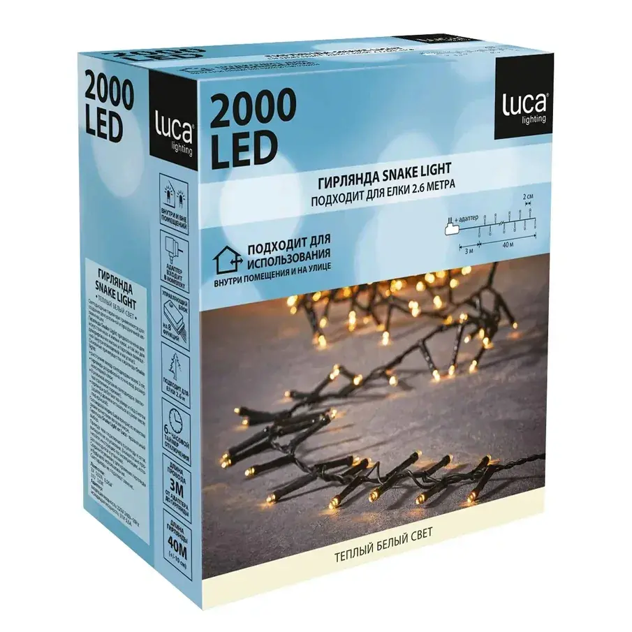 Гирлянды серии Snake Light станут отличным украшением Вашего праздника. Особенность гирлянды заключается в расстоянии между светодиодами, всего лишь 2 см. Благодаря высокой плотности светодиодов гирлянда придает роскошный вид придметам интерьера. Основное предназначение данной гирлянды - украшение ели, но ей можно так же украсить перила, колоны и другие предметы. Гирлянда оборудована контроллером на 8 режимов, безопасна для использования в местах контакта с людьми, так как рабочее напряжение 24В, трансформатор поставляется вместе с гирляндой.