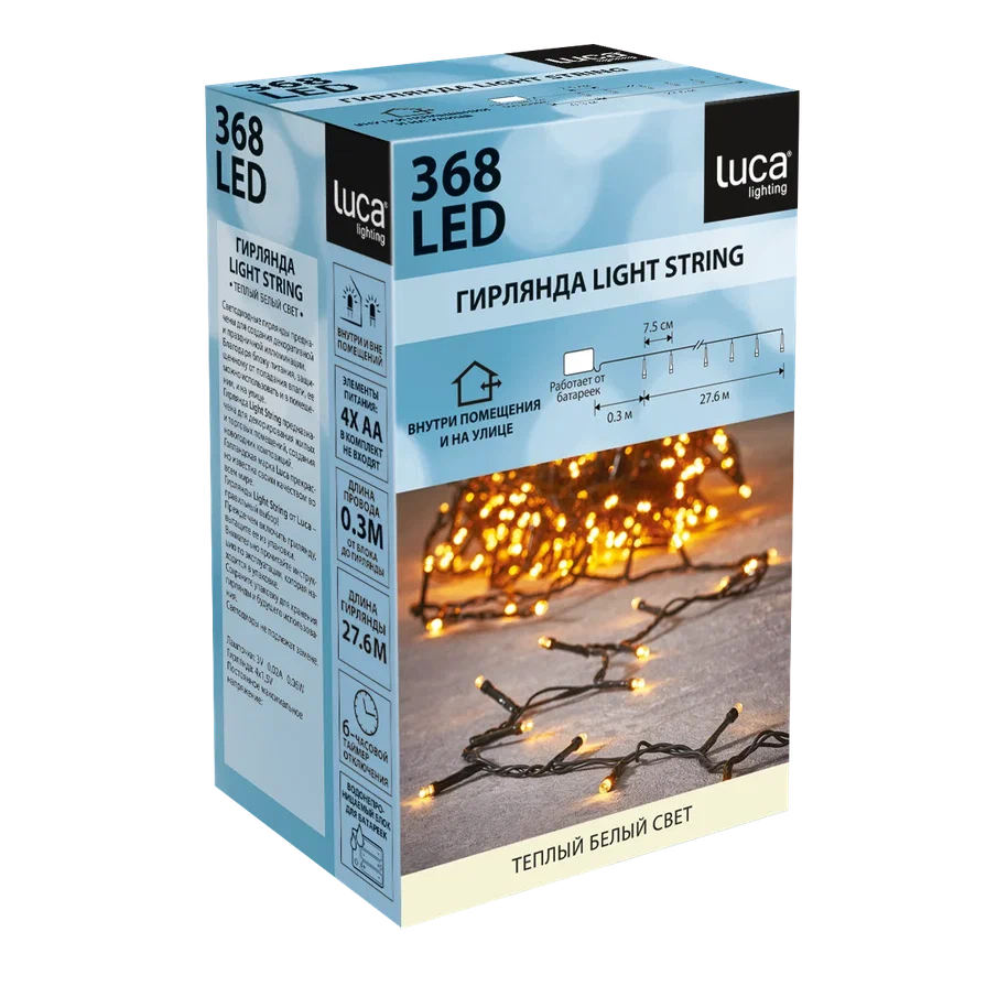 Светодиодная нить String Light 368 теплых ламп, 27.6 м., на батарейках, таймер, зеленый провод, Luca (83791) – купить за 1 500 ₽ | Мир Ёлок — ваш лучший выбор для создания волшебной атмосферы на Новый год!