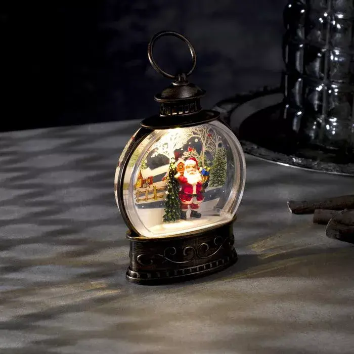 Фигурка Дедушки Мороза внутри изделия – один из последних новогодних трендов. Поэтому неудивительно, что светодиодная фигура «Дед Мороз и елка» с теплым белым свечением – одна из покупаемых моделей нашего каталога. Корпус изделия выдержан в винтажном стиле, в то время как яркая композиция внутри него выглядит очень современно. Такой микс пришелся по душе многим.