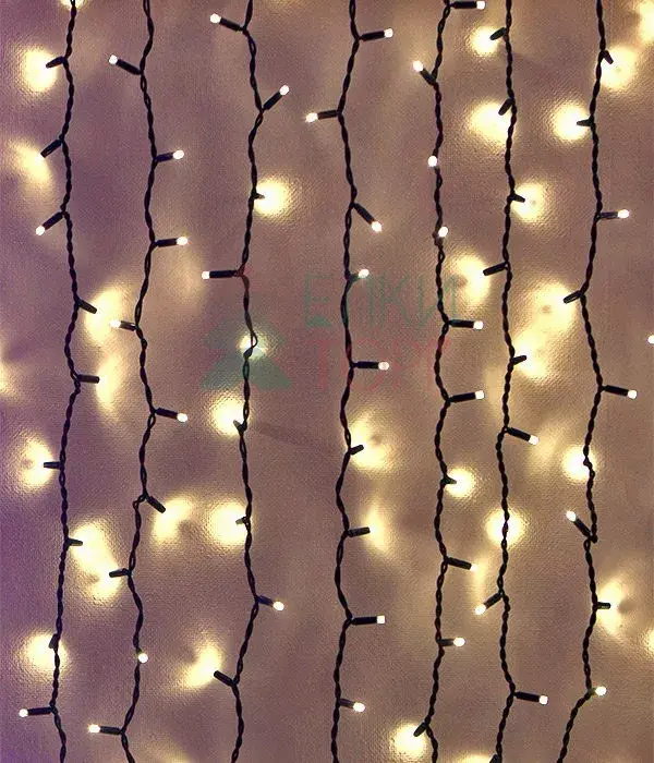 Светодиодный занавес 2*3 м., Sealed с теплыми белыми LED лампочками, на каучуковом проводе, обладает высокой степенью защиты , которая позволяет использовать ее при низких температурах до -60oC, высокой влажности и резких перепадах температур. Все гирлянды серии Sealed 220V изготовлены на каучуковых проводах, и имеют единые коннекторы, а использование различных соединительных элементов позволит Вам упростить монтаж и объединить гирлянды в непрерывную сеть. Все это позволит создавать уникальные световые композиции с минимальным количеством точек подключений.Особенностью этой гирлянды является мерцание, мерцает каждый светодиод.