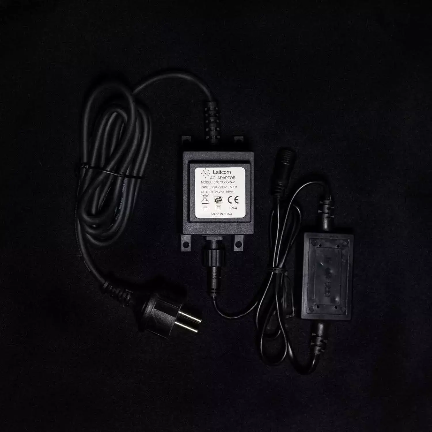 Трансформатор 30W с Выпрямителем для Нитей 24В, до 600 LED – Необходим для подключения гирлянды к питанию (к розетке 220В). Используя данный трансформатор, вы сможете соединить последовательно в цепь до 600 светодиодов (например, если в одной гирлянде 100 светодиодов, то вы сможете соединить последовательно до 6 гирлянд).
