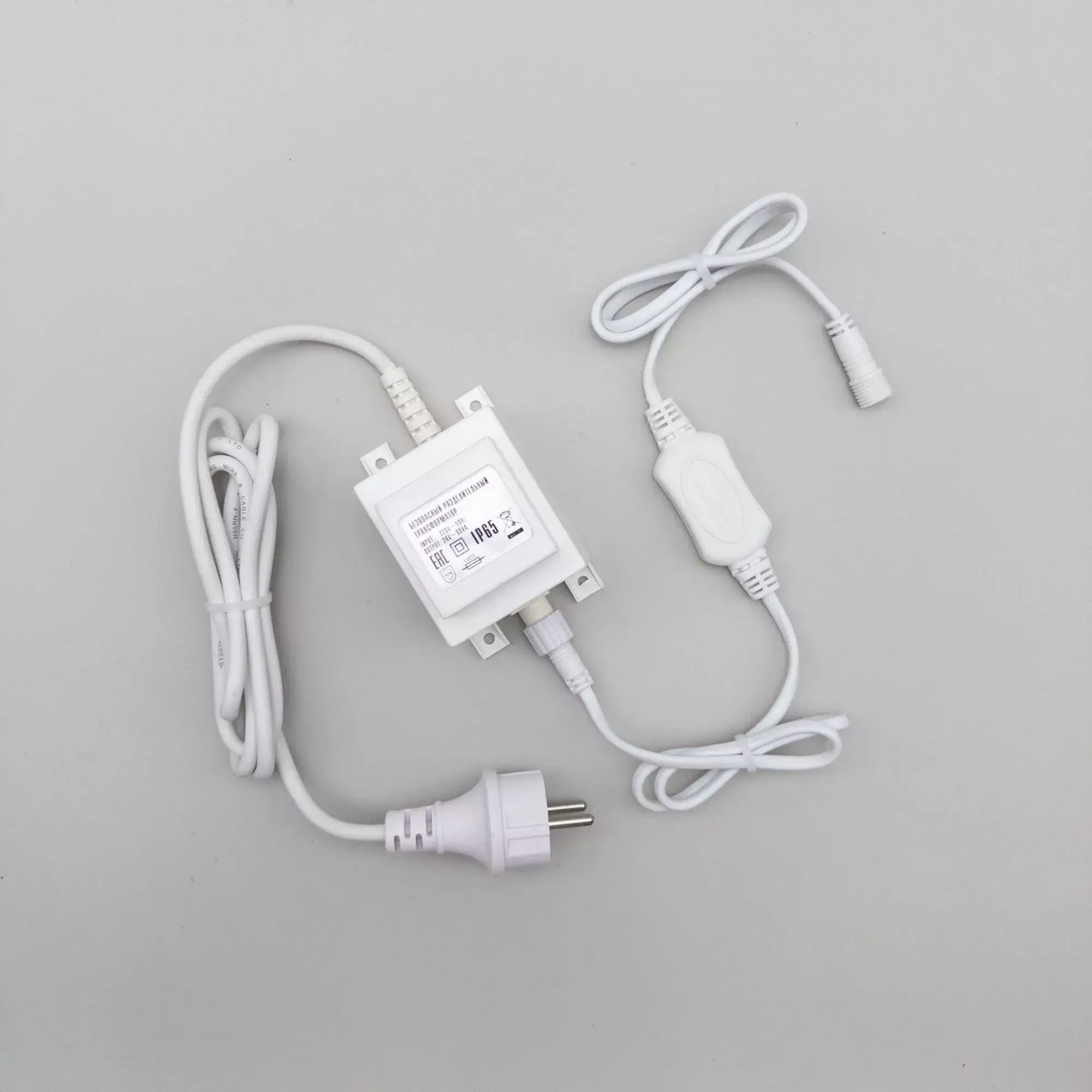 Трансформатор 60W с Выпрямителем 24В, до 1000 LED – Необходим для подключения гирлянды к питанию (к розетке 220В). Используя данный трансформатор, вы сможете соединить последовательно в цепь до 1000 светодиодов (например, если в одной гирлянде 100 светодиодов, то вы сможете соединить последовательно до 10 гирлянд).